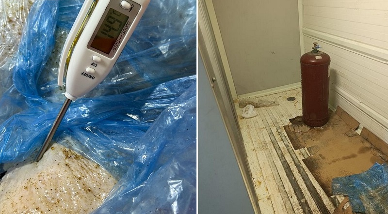 Tikrinimo metu rasta marinuotų, paruoštų rūkymui vištienos pusgaminių, laikytų gamybinėje patalpoje, kurioje temperatūra siekė +19 °C. Pusgaminių vidaus temperatūra siekė +14,9 °C.