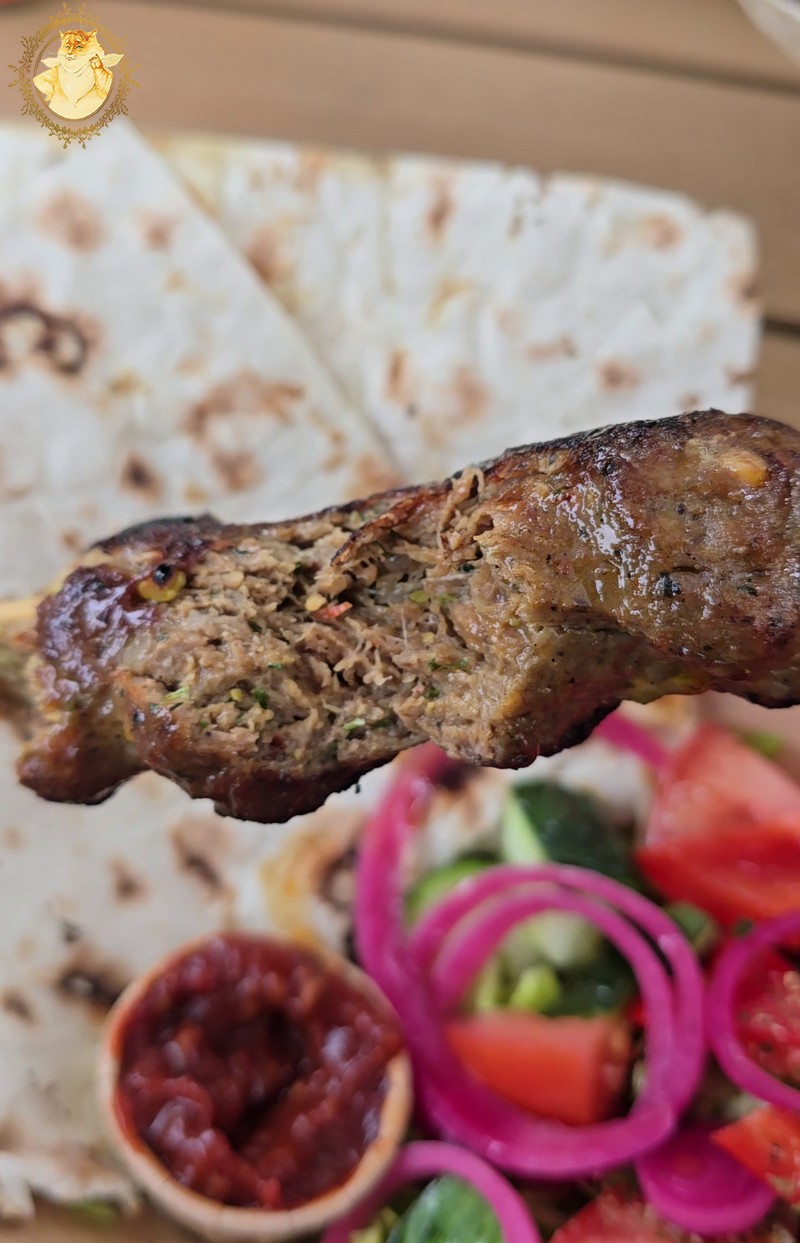 Liulia kebabas iš ėrienos savyje turėjo aštresnių natų, bet prieskoniai naudoti gaminant liulia kebabą, kaip nekeista, bet neužgožė ėrienos skonio.