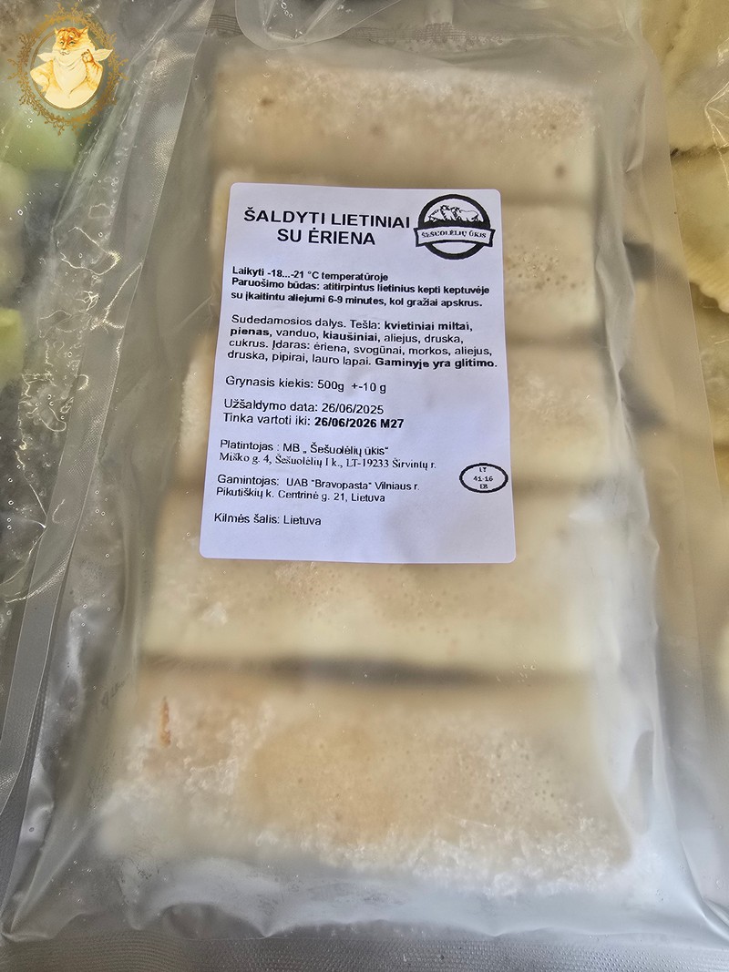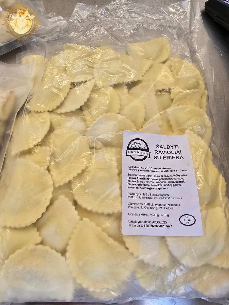 Kol aš klijavau Riebaus katino aukštą įvertinimą (5/5) atspindinti lipduką, iškalbi darbuotoja laiko veltui negaišo, o sugebėjo Katinienę supažindinti su „Šešuolėlių ūkio” parduodama šaldyta produkcija.