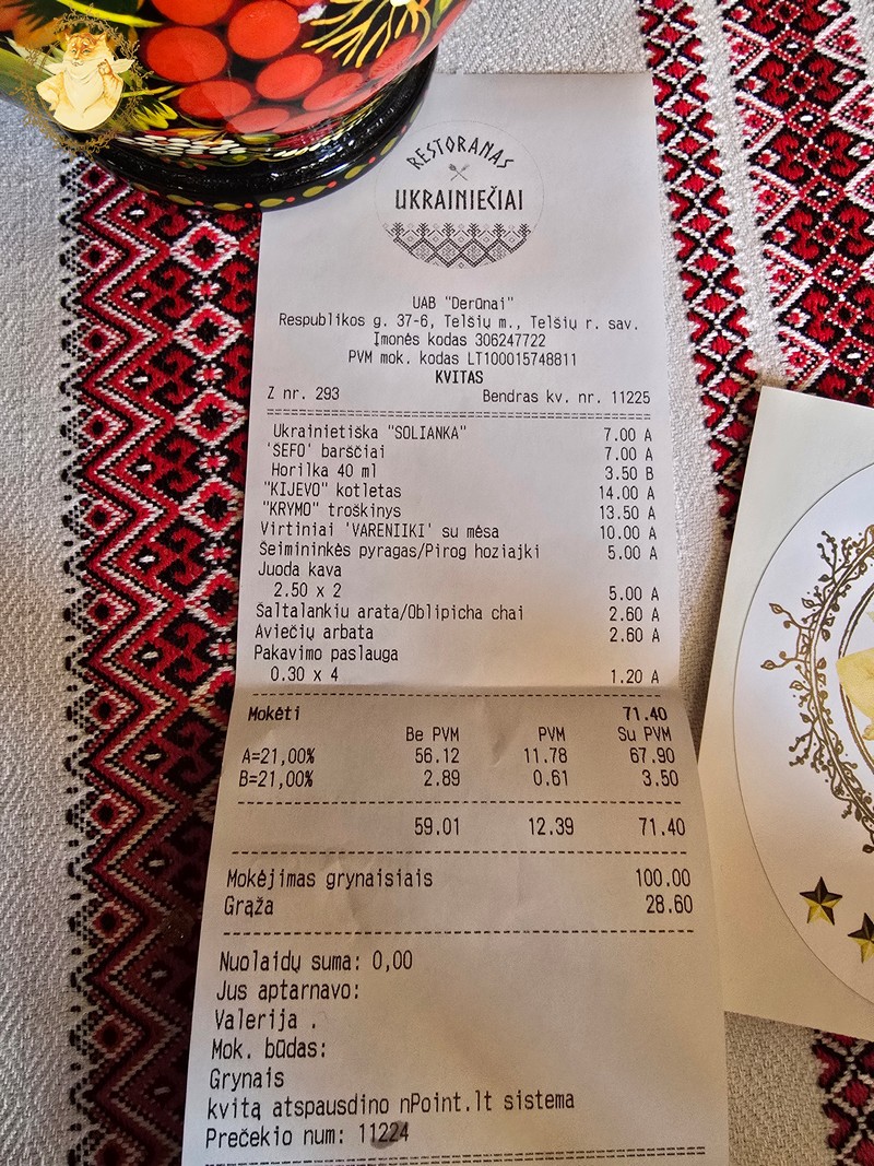 Jos pasakymas: važiuojame pavalgyti ukrainietiškų barščių į Žemaitiją, man iš pirmo nuskambėjo kaip juokelis, bet nepamatęs jos veide jokios šypsenos, paprašiau daugiau informacijos apie siūlomą maitinimo įstaigą.