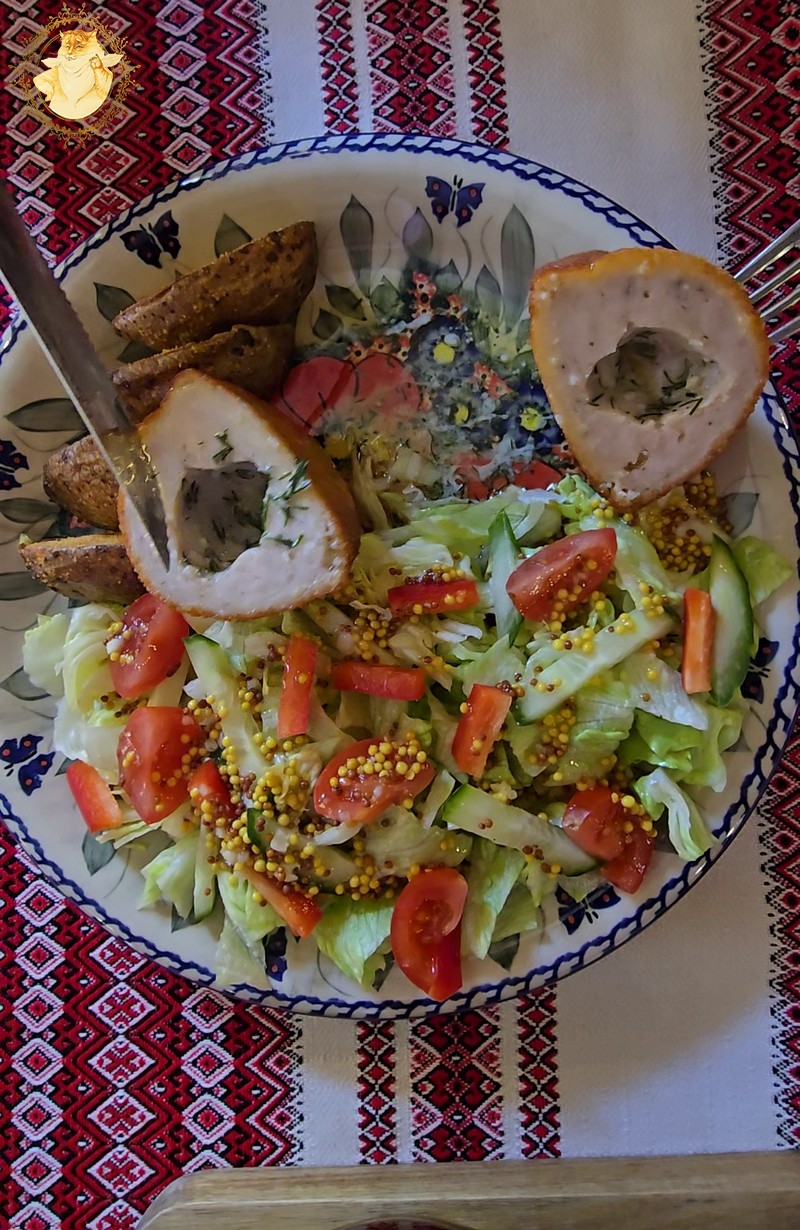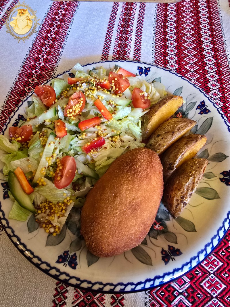 Nes jei neklystu, ukrainiečiai gamindami šiuos kotletus puošia vištos blauzdelės kauliuku, jo pusę iškišdami iš pačio kotleto.