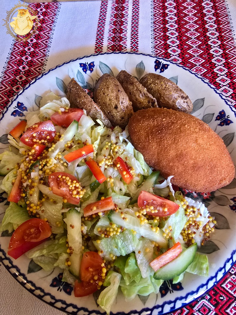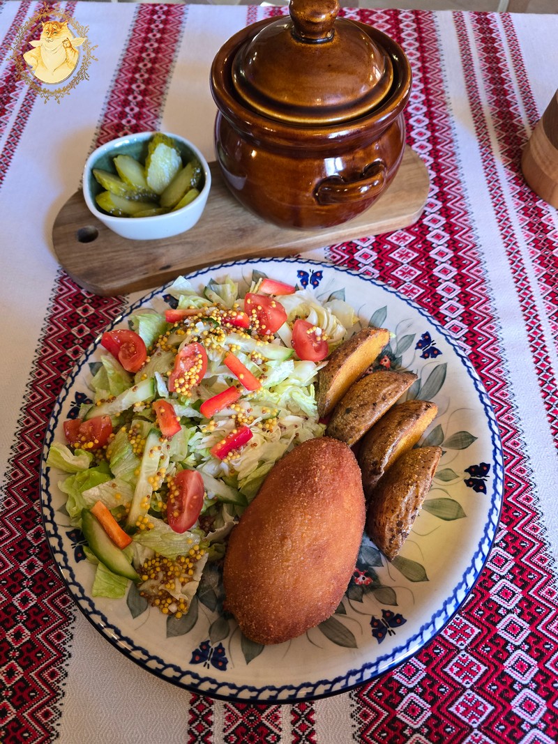 Katinienės pasirinkimas buvo „Kijevo” kotletas, o mano – „Krymo”troškinys.