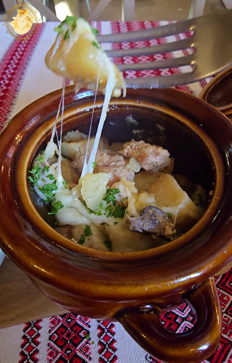 Pirmos minties, kad troškinys bus riebus teko atsisakyti. Nors jo paviršius ir buvo padengtas sūriu, bet dėka liesesnės kiaulienos perdėto riebumo pavyko išvengti.