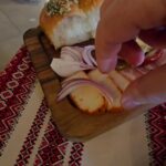 Po to sekė lašinukai su svogūnu ir šaukštas barščių.
