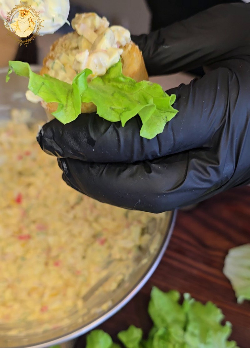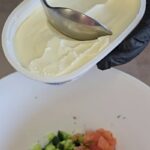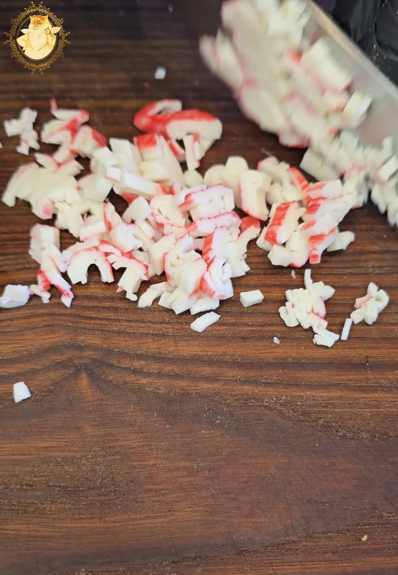 O tuo metu mes pasigaminsime du skirtingus įdarus. Vienas bus su krabų lazdelėmis, o kitas su lašiša.