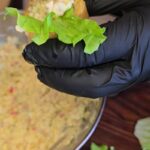 Tam, kad atskirti krepšelius su krabų skonio lazdelėmis, juos papuošiau salotos lapu.