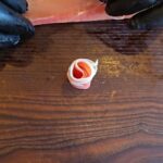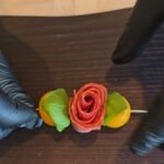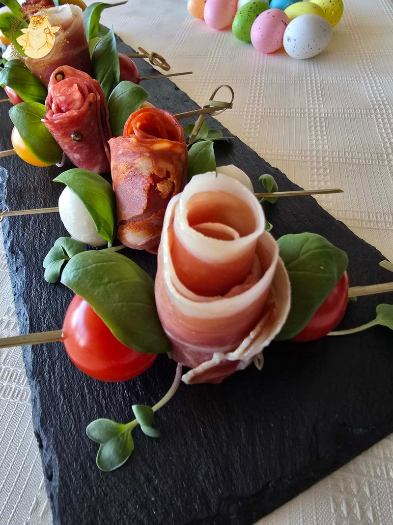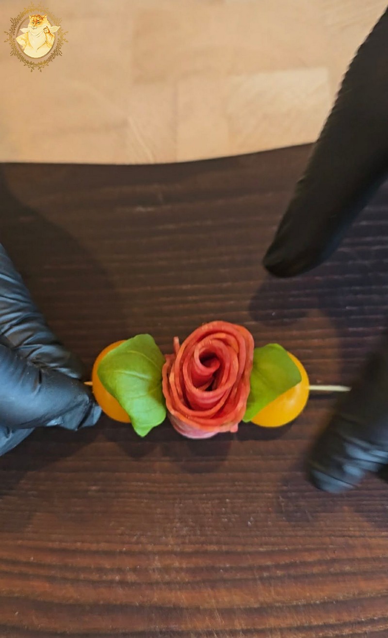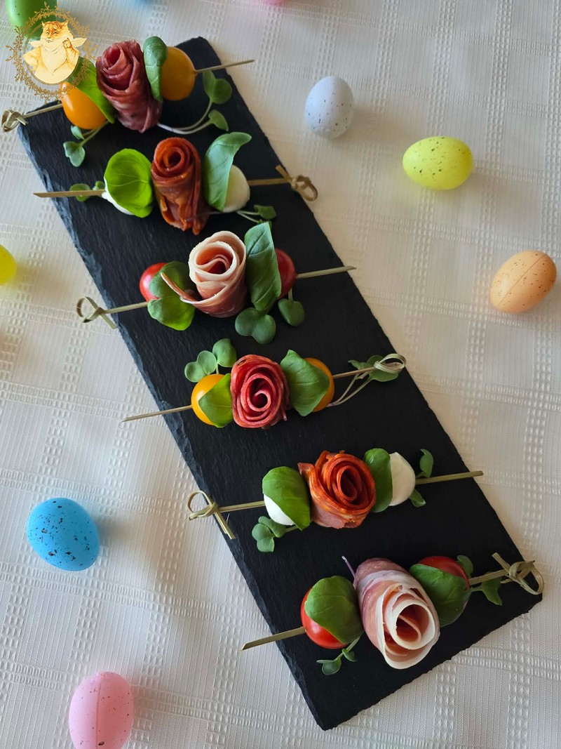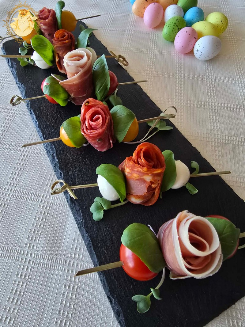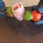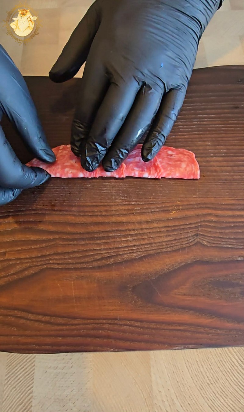Dešros vienai rožytei reikės 4 griežinėlių, o kumpio poros.