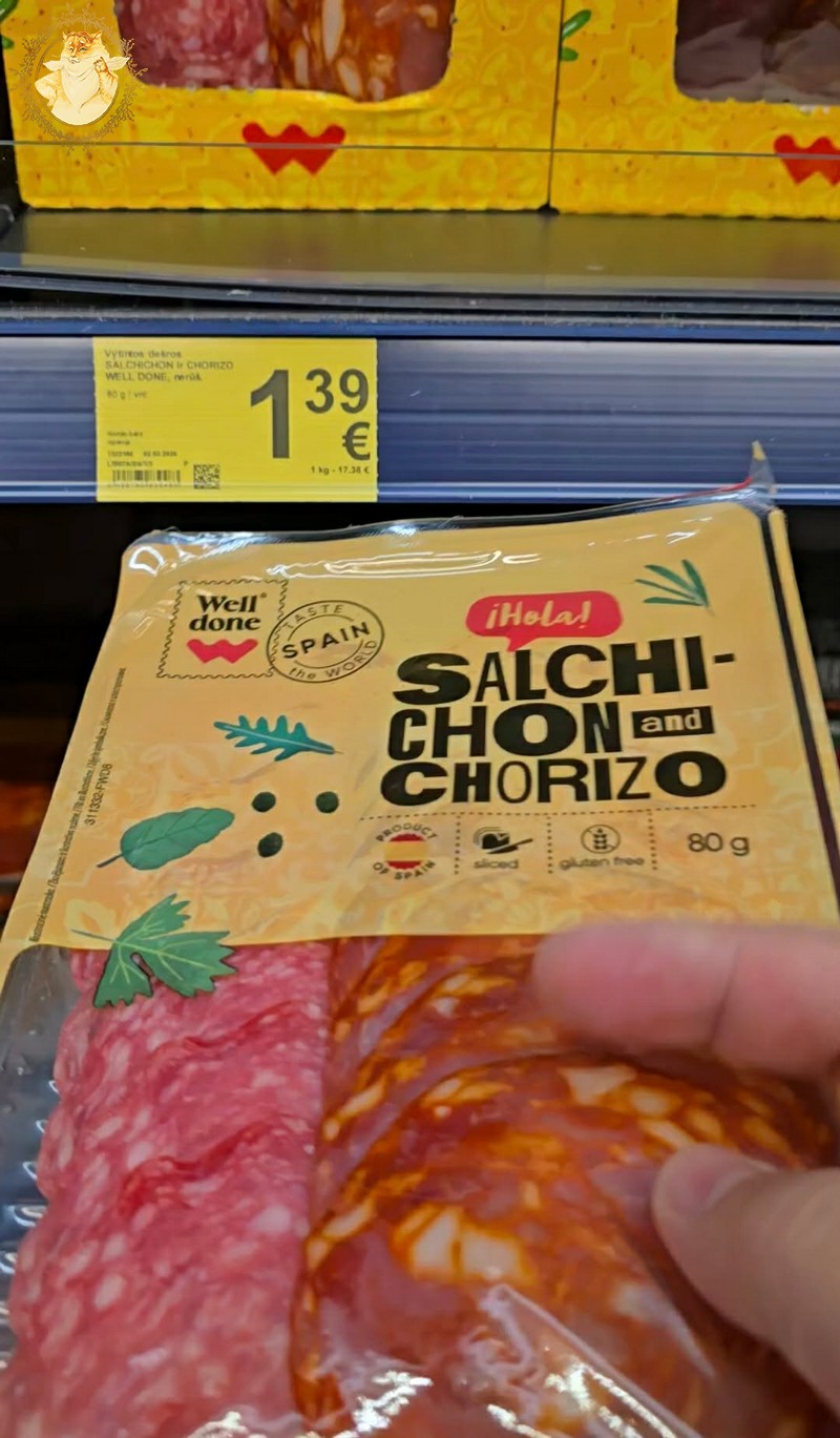- vytinta dešra Salchichon ir Chorizo Well Done,