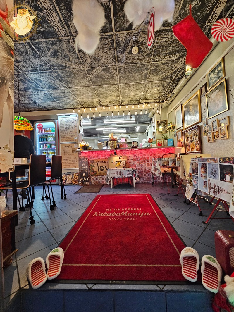 Manau tai vienintelė kebabinė Lietuvoje, į kurią užėjęs eisi ne tik raudonu kilimu, bet taip pat galėsi iššokti iš savo sunkios žieminės avalynės ir kojikes panardinti į šiltas tapkutes.