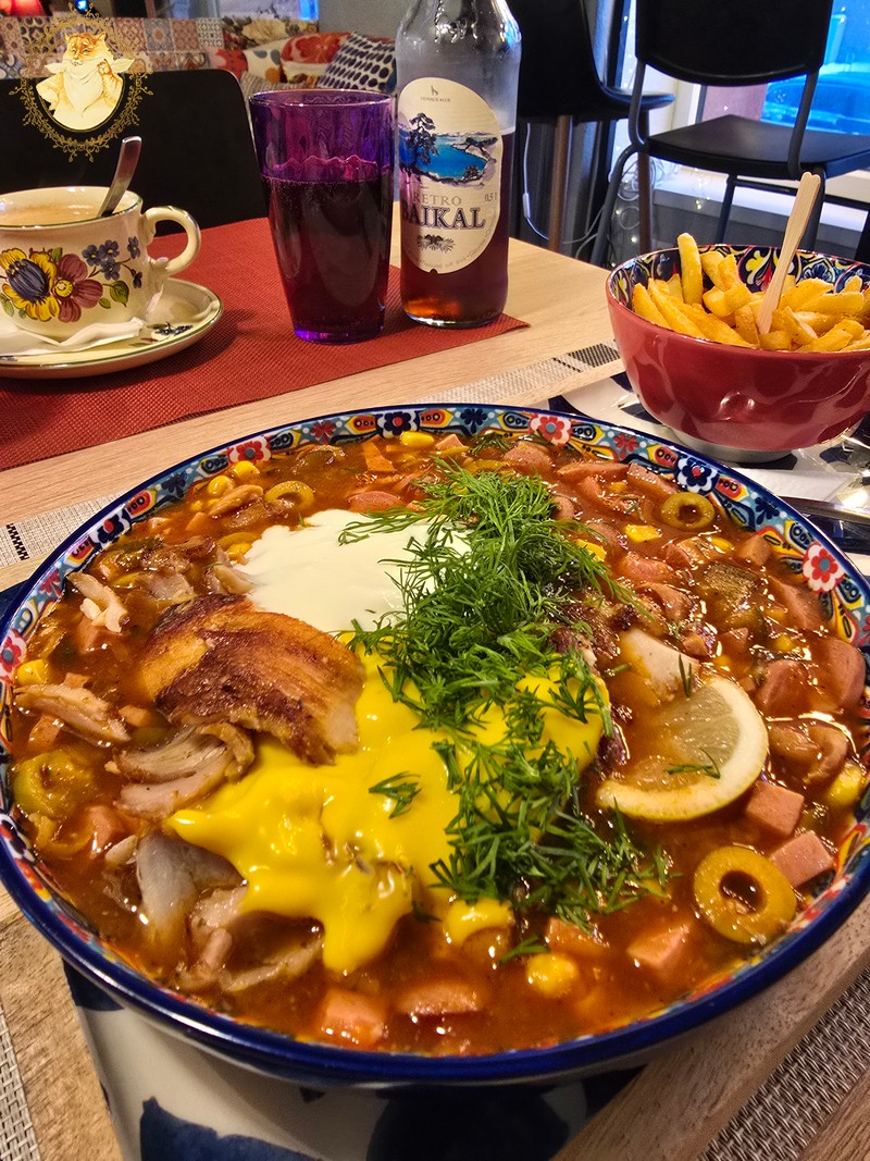 Katinienė, kas rytą besipykstanti su svarstyklėmis, be kebabo papildomai paskanauti salotų atsisakė, bet aš senai nusispjovęs į su nenumaldomu greičiu augantį svorį, prieš valgant kebabą nepraleidau progos suvalgyti dar ir šiupininę sriubą.