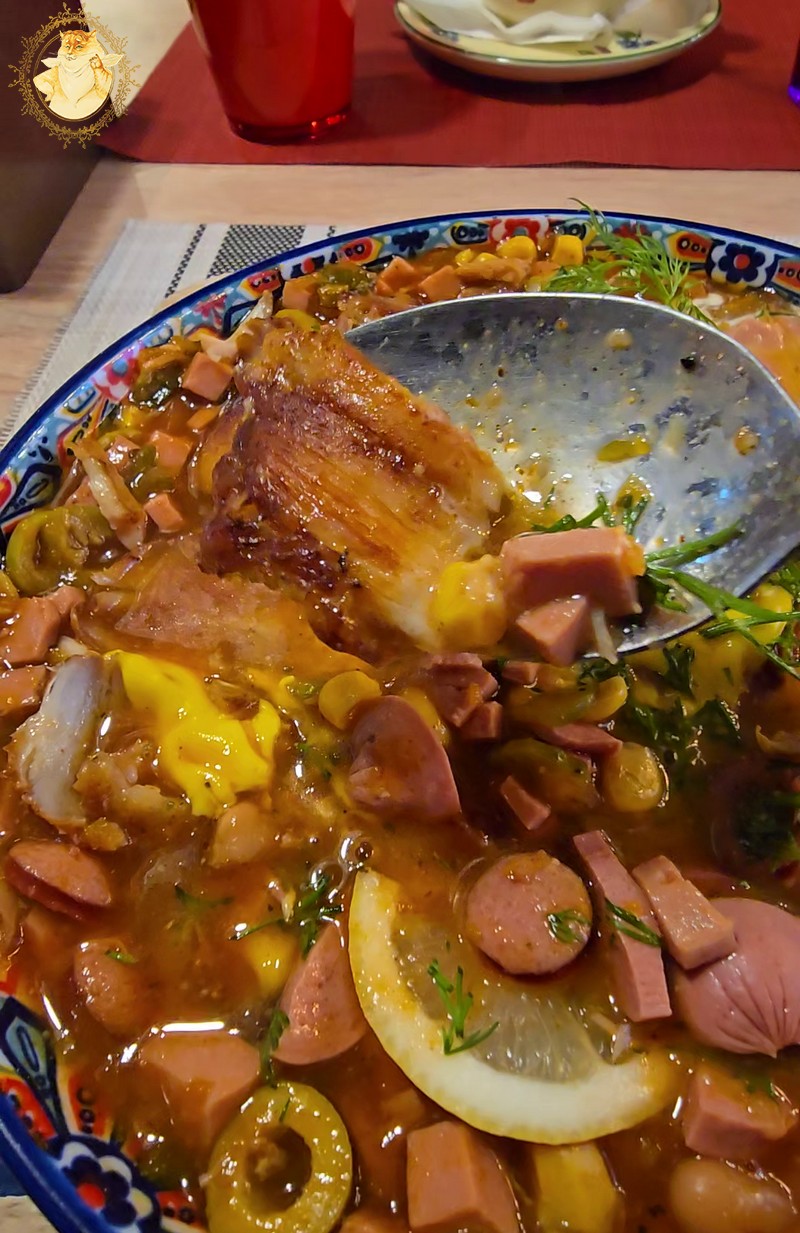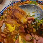 Nors sriuboje jau buvo kelių rūšių dešrelių, į ją papildomai buvo nuguldyta ir kebabo mėsos, bei čederio sūrio.