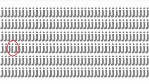 Atidžiai pažiūrėkite į vaizdą, nuskaitykite visas sritis ir pažiūrėkite, ar galite greitai pastebėti keistą raidę.
