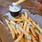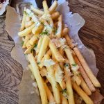 Tikrai nebūtume užsakę gruzdintų bulvyčių, jei jos būtų patiekiamos daugeliui įprastoje kompanijoje kartu su pomidorų padažu, bet čia bulvytės šlakstytos trumų aliejumi ir dar tas padažiukas kuo tai primenantis kastinį.