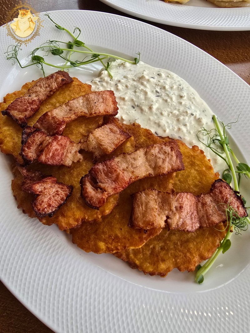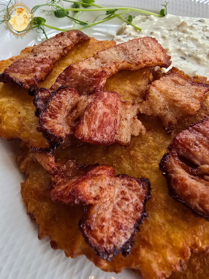 Bulvinius blynus nesvarbu ar jie yra kepti keptuvėje ar gruzdintuvėje viešoje vietoje reikia valgyti su įrankių pagalba, bet jei būčiau namie ir vietoje padažiuko prie šių blynų būčiau pasidėjęs grietinės indą, imčiau tuos blynus rankomis ir panardinęs į grietinę blyną taip, kad kartu panirtų ir pirštai, mėgaučiausi plonyčiais traškiais blynukais prisikasdamas paskrudusia šonine.