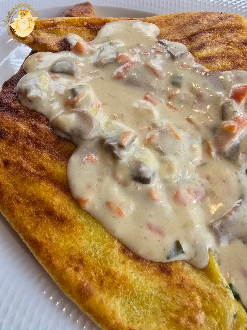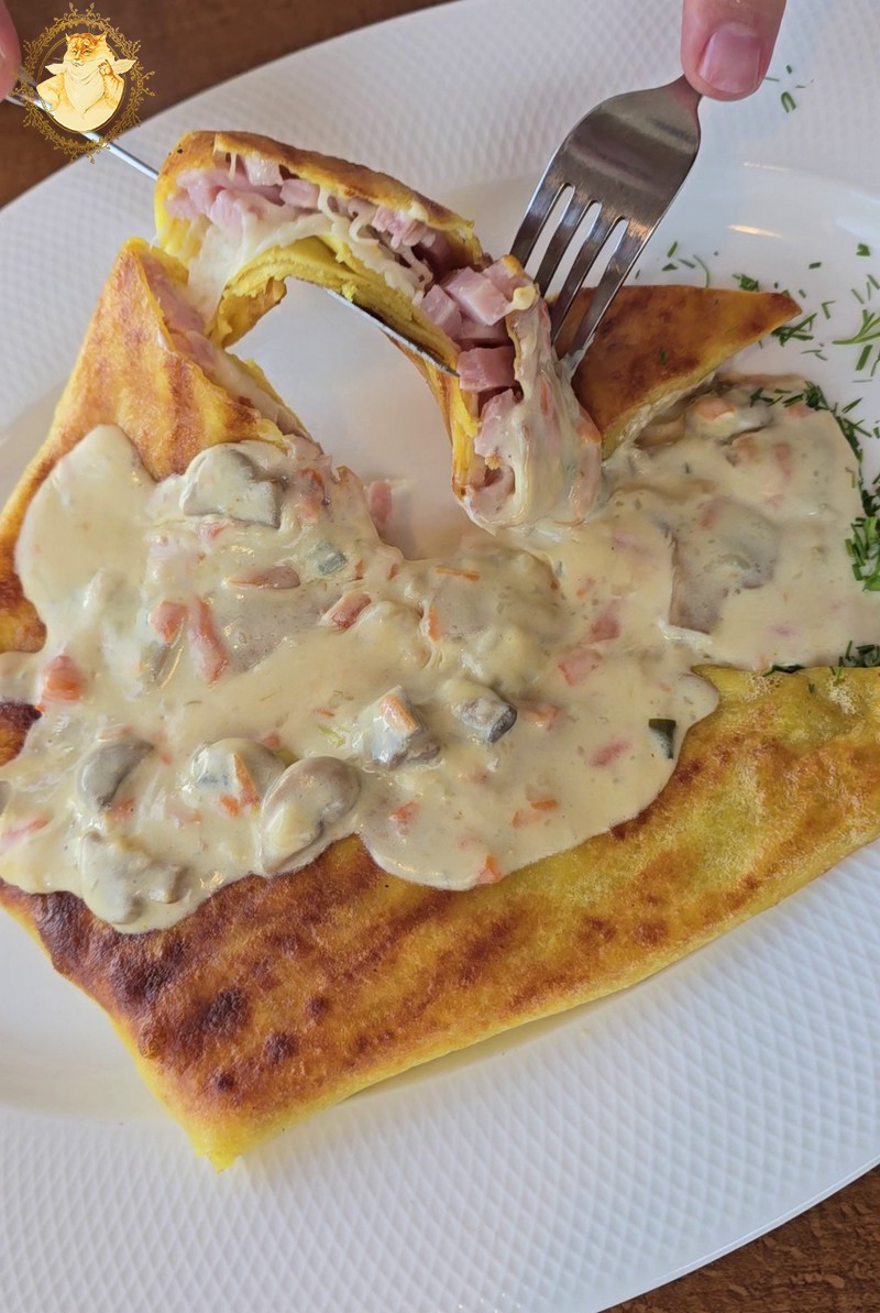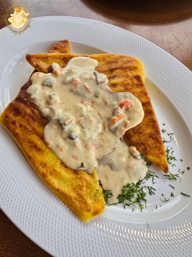 Kaip nujausdamas kad užkandžius gausiu valgyti vienas, kaip pagrindinį patiekalą užsisakiau lietinius su kumpiu ir sūriu, nes kažkokį didesnį patiekalą jau būčiau nebeįveikęs.