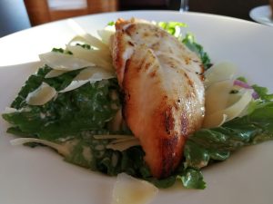 Atneštos salotos ir jų kiekis mane ir maloniai nustebino, ir tuo pačiu ne. Tiesiai šviesiai – jų buvo daug. Sakote, kur čia bėda? Bėda ta, kad restorane atsižvelgdamas į porcijų dydį aš visada įveikiu sriubą, salotas bei karštą patiekalą. Bet žvelgdamas į vištienos gabalioką, pūpsantį ant salotų viršaus, suvokiau, kad teks kiek ir pasistengti.