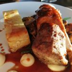 Kiauliena sultingumu niekuo nenusileido prieš tai valgytai vištienai. Rudieji pievagrybiai, salierai su svogūnais sudarė puikų derinį. Neslėpsiu – pastaruoju metu pradėjau laikytis dietos, tad pradėjau vengti miltinių bei bulvinių patiekalų. Bet bulvių paplotėlis buvo toks skanus, kad privertė mane nusidėti ir pamiršus dietas mėgautis puikiu deriniu.
