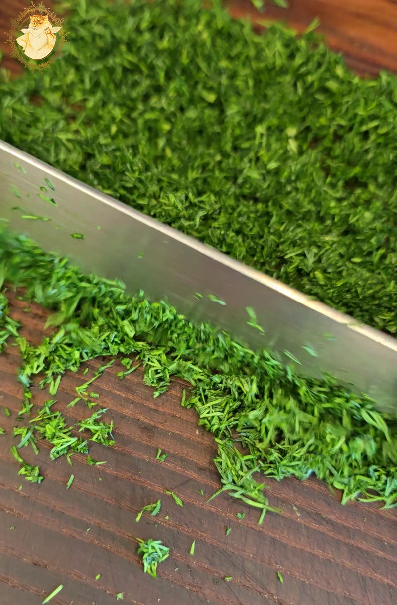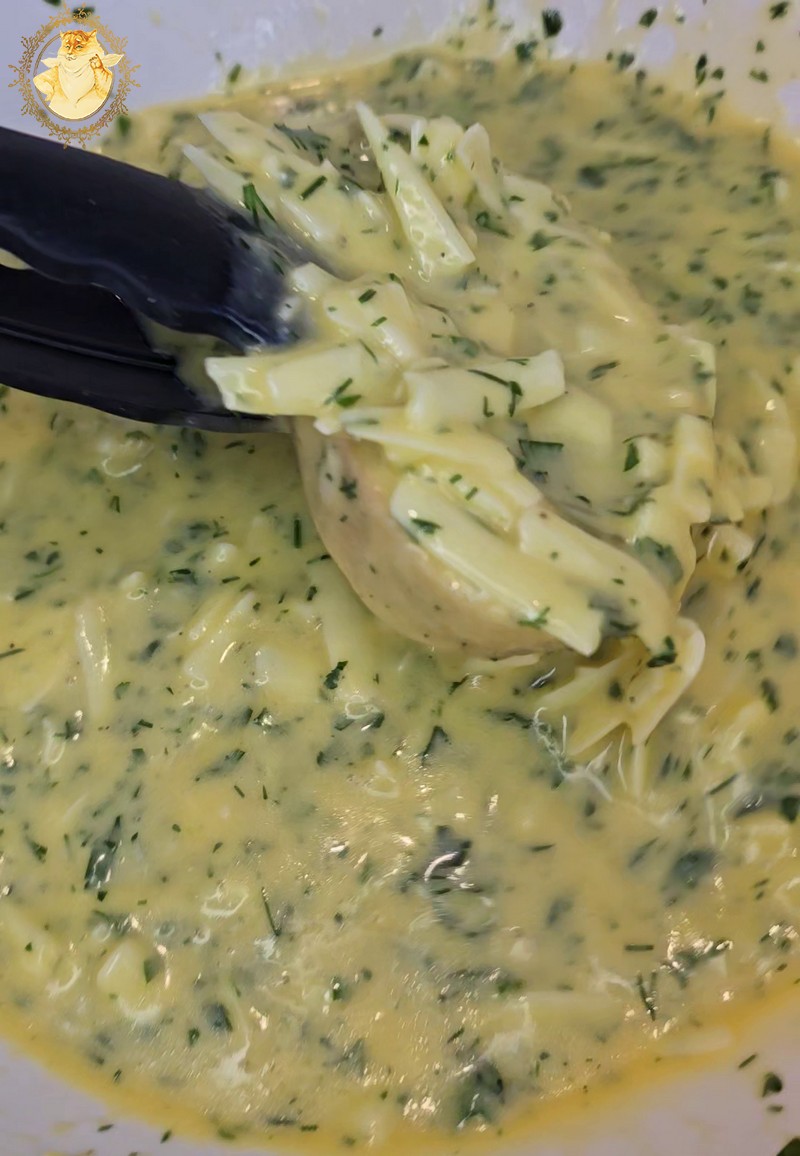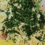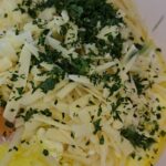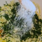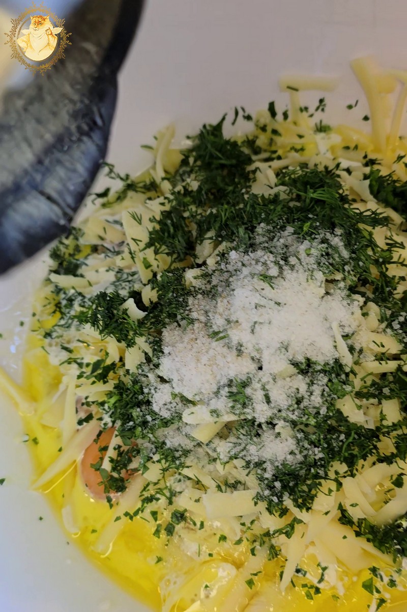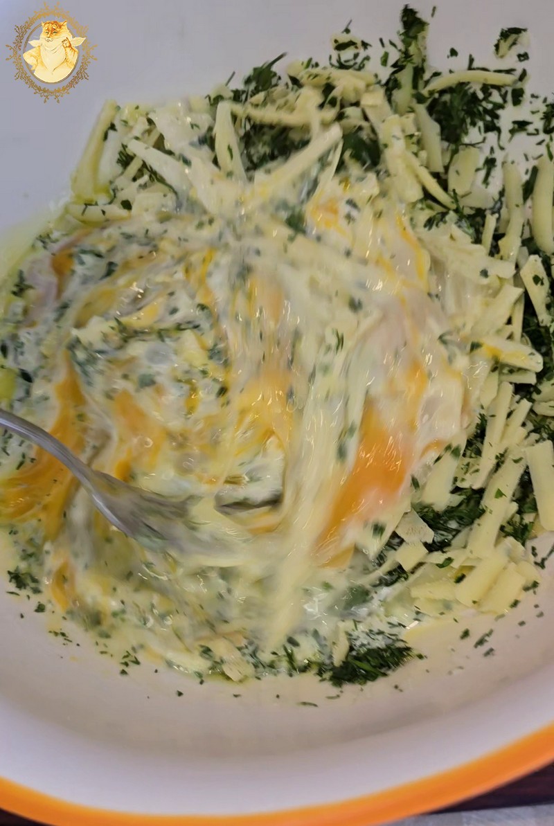 Dedame smulkintų krapų, petražolių ir tarkuoto švelnaus čederio sūrio.