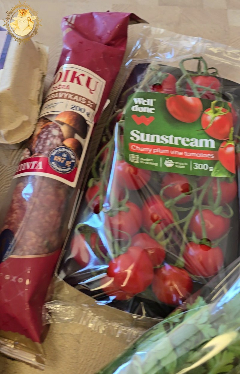 Pirmiausia surašysiu produktus, kurių mums reikės šiems sumuštiniams iškepti.