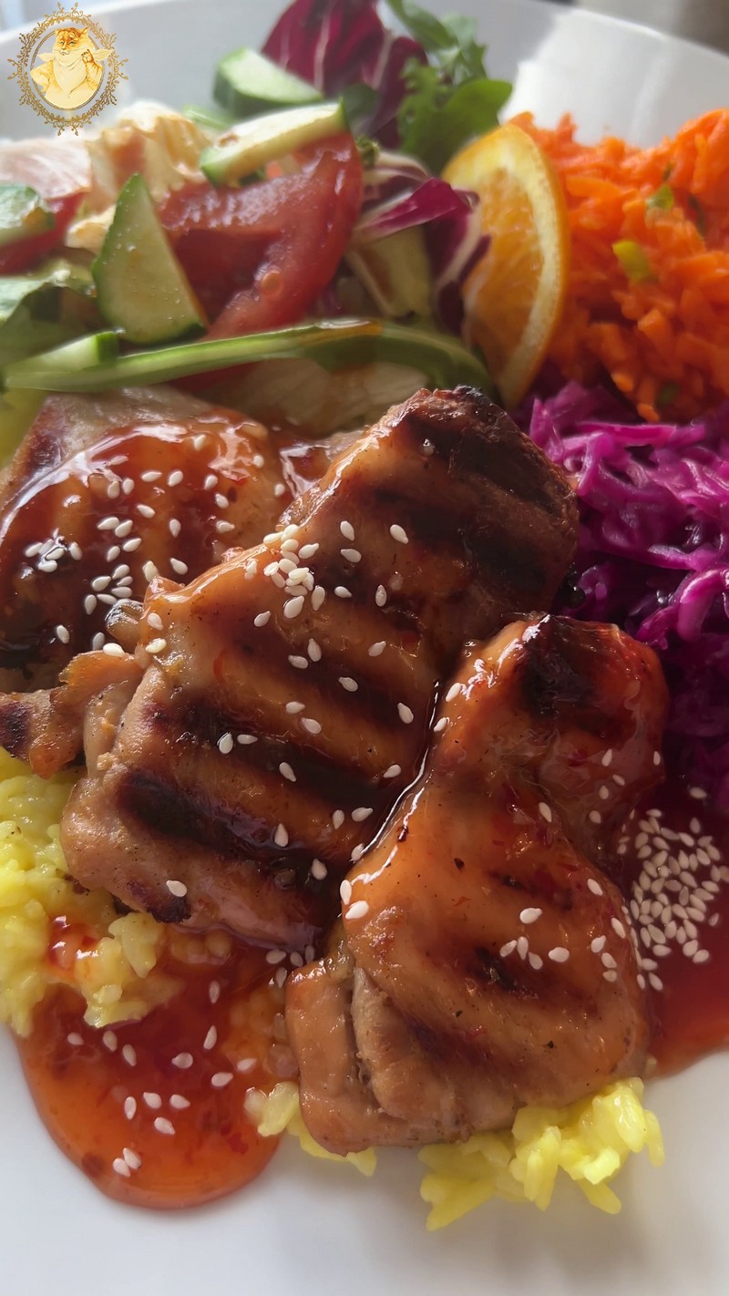 Grill vištiena su saldžiarūgščiu padažu – 7,00€