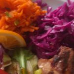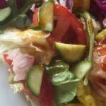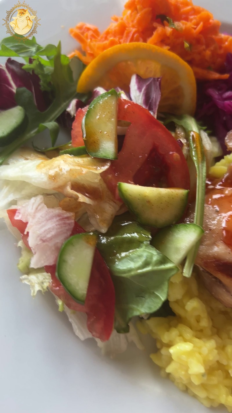 Garnyrą tiek prie vištienos, tiek prie BBQ šonakaulių būtų galima vadinti – „Šv. Kūčių belaukiant”. Ir vienintelis ką garnyras turi bendro su Kūčiomis tai, kad tiek per Kūčias patiekalų ant stalo turi būti nemažiau dvylikos, tiek čia į lėkštę garnyro bandyta sudėti daugiau dvylikos skirtingų salotų.