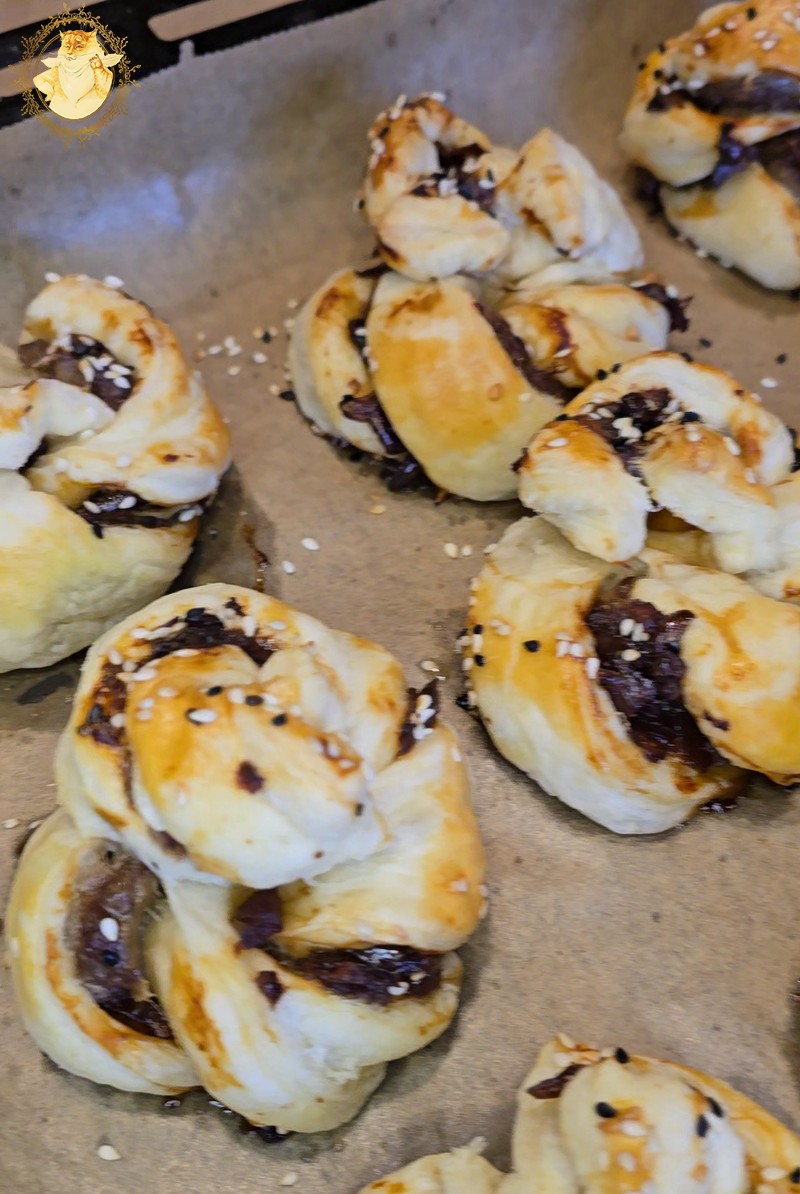 Bandeles sutepę kiaušinio plakiniu ir pabarstę sezamo sėklomis pašauname jas į orkaitę.