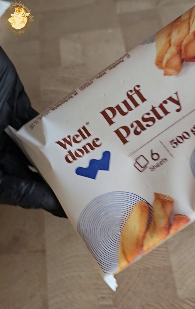 Jei turite noro kažką greitai pagaminti namie užsukite į virtuvę, atidarykite šaldiklį ir iš jo išimkite šaldytą sluoksniuotą tešlą „Well done”. Ją padėkite ant kepimo popieriaus ir leiskite kelias minutes kambario temperatūroje atsilaidinti.