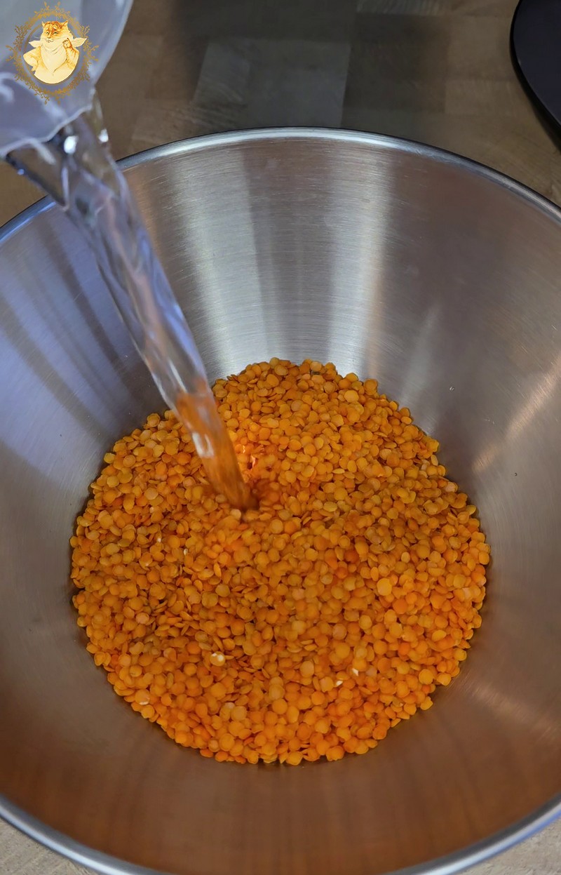 Pirmiausia užpilsime šaltu vandeniu lešius ir paliksime juos 1-2 val. pastovėti.