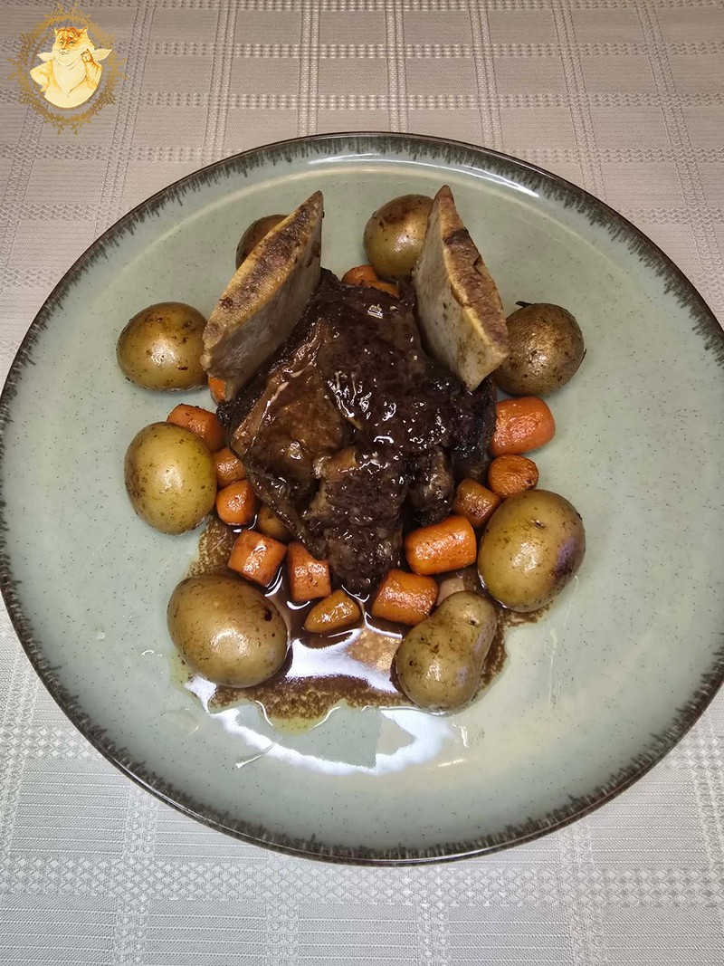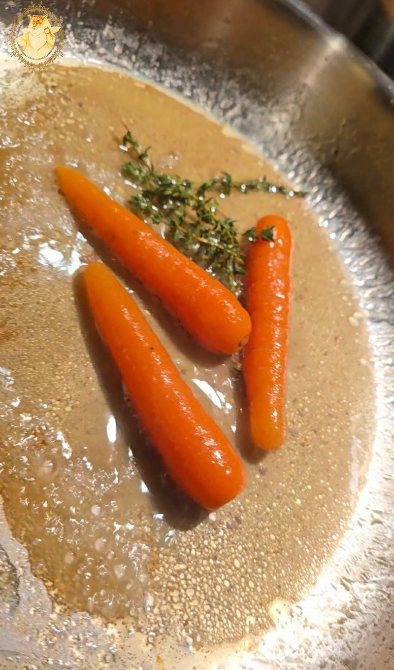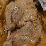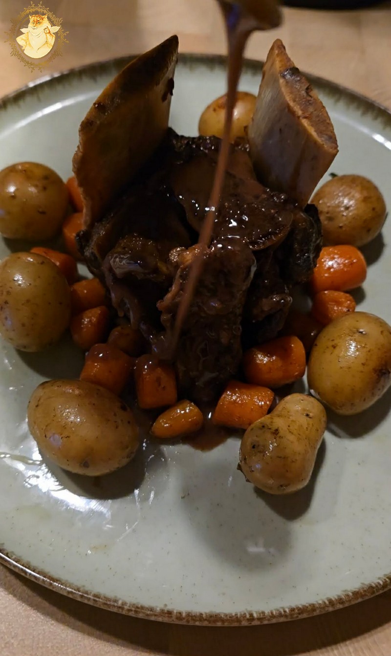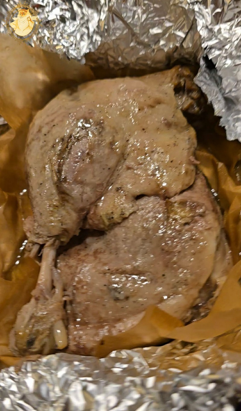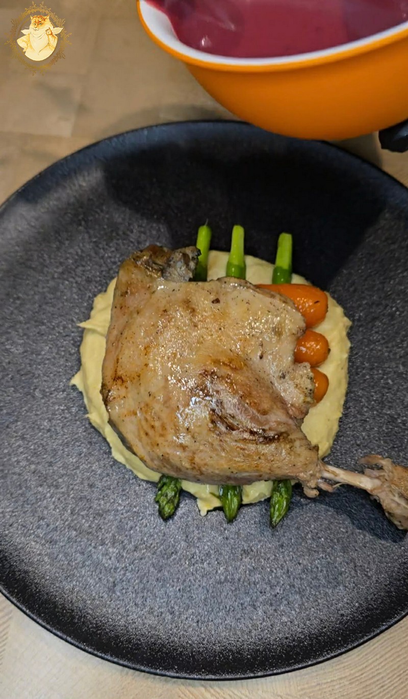Tiek anties koją, tiek jaučio šonkaulius, ar jaučio žandus, prieš tiekiant išėmėme iš vakuumo ir padėję ant kepimo popieriaus ir susukę į foliją, pašildėme 180C apie 30 min., tada praskleidę folijją leidome kiek apskrusti.