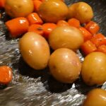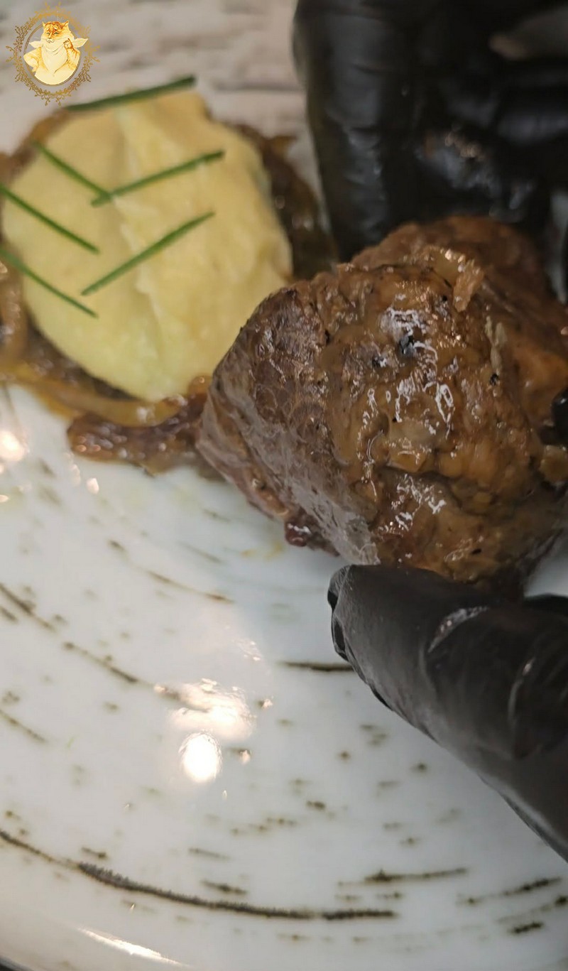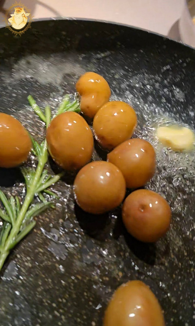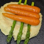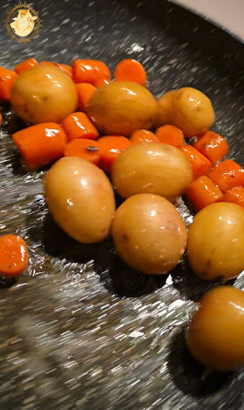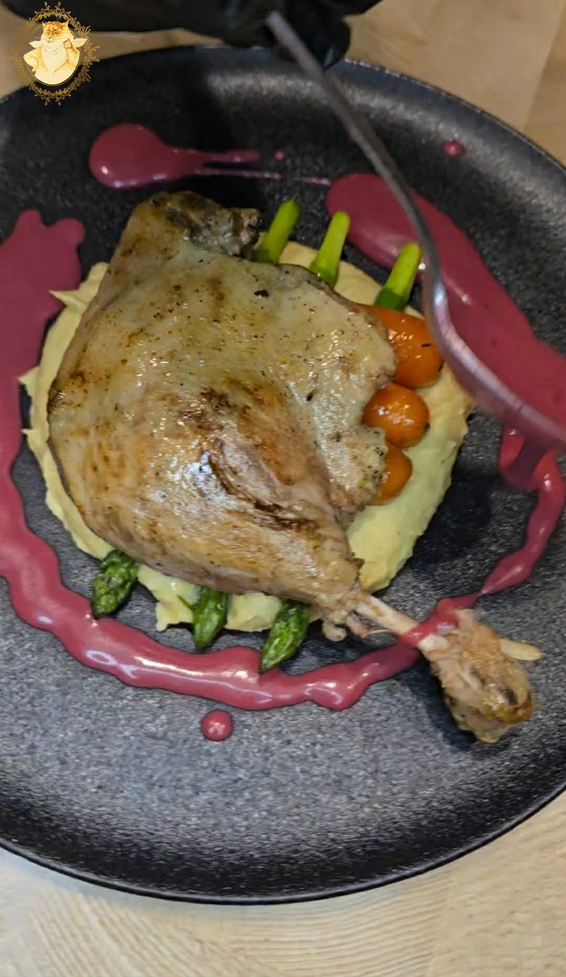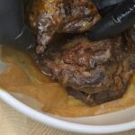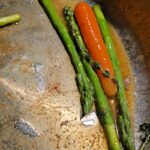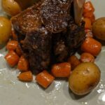 Tiek anties koją, tiek jaučio šonkaulius, ar jaučio žandus, prieš tiekiant išėmėme iš vakuumo ir padėję ant kepimo popieriaus ir susukę į foliją, pašildėme 180C apie 30 min., tada praskleidę folijją leidome kiek apskrusti.