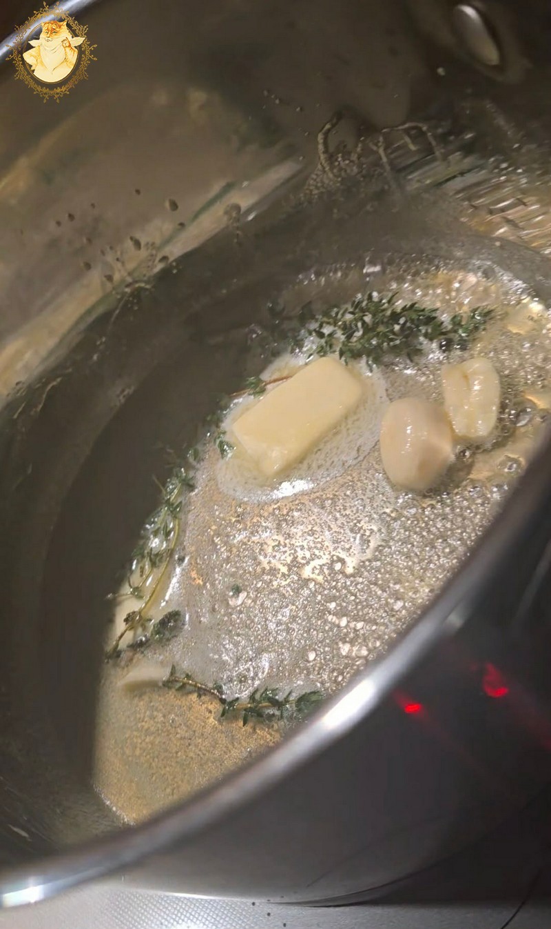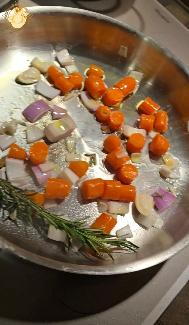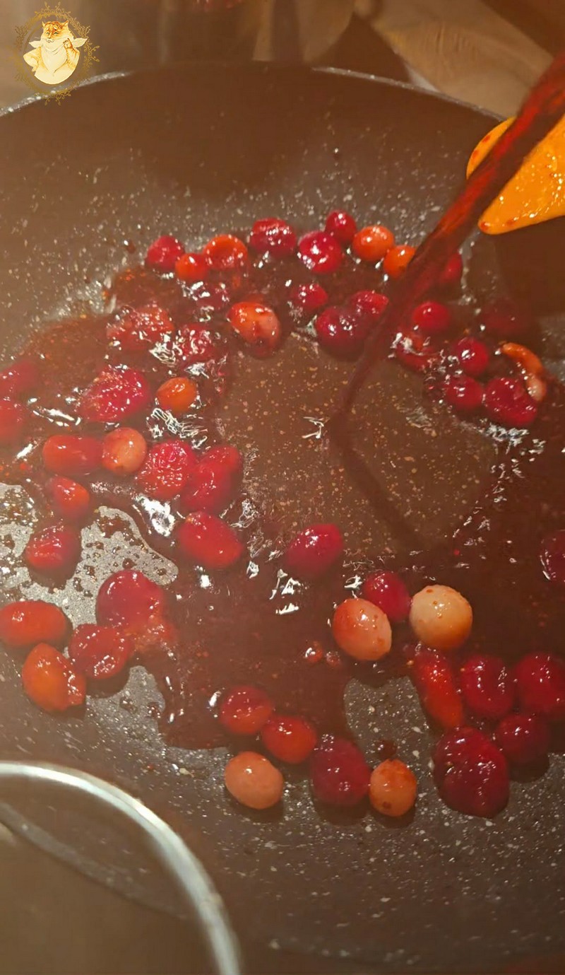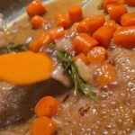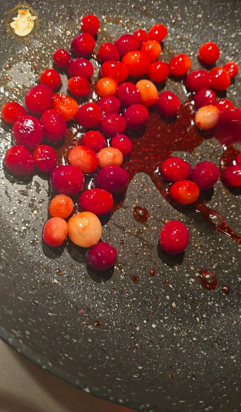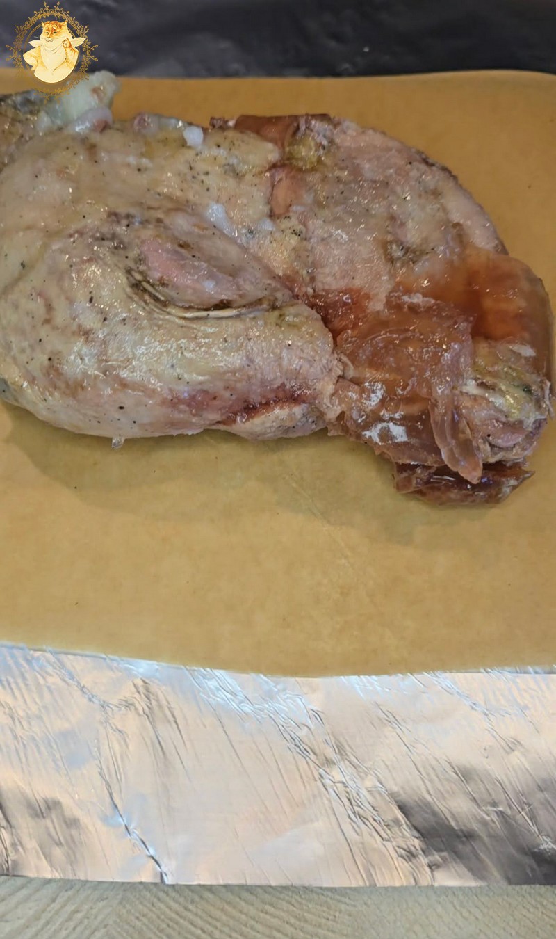 Tiek anties koją, tiek jaučio šonkaulius, ar jaučio žandus, prieš tiekiant išėmėme iš vakuumo ir padėję ant kepimo popieriaus ir susukę į foliją, pašildėme 180C apie 30 min., tada praskleidę folijją leidome kiek apskrusti.