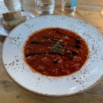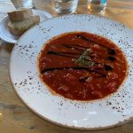 Tad prie salotų su jautiena, pomidorinės sriubos aš užsakiau dar ir sterką.