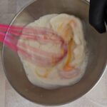 Ant lavašo supilame kiaušinių ir pieno plakinį.