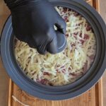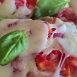 Uždedame sutarkuotą mocarelos sūrį ir uždengę dangčiu kepame apie 10min. ant vidutinės kaitros.
