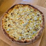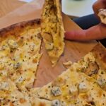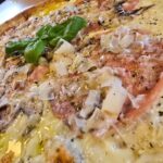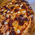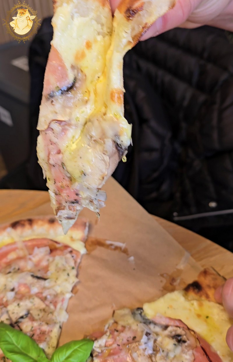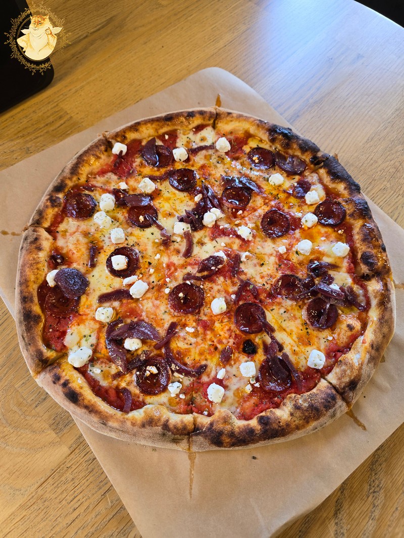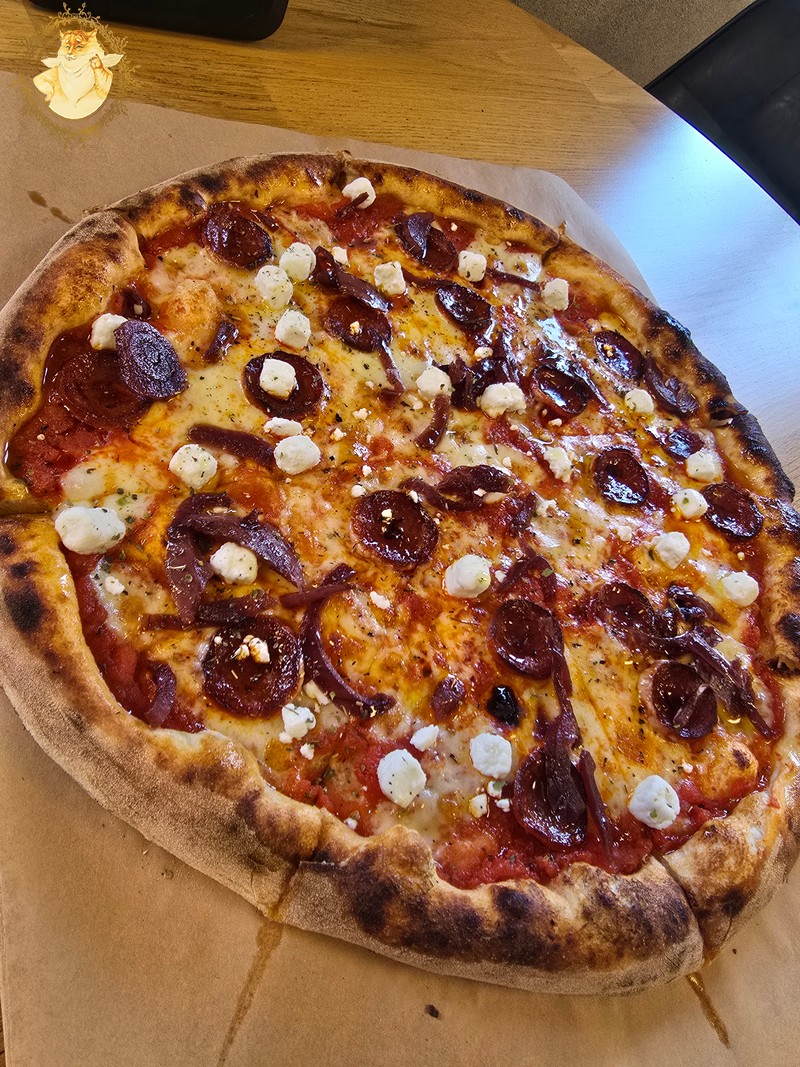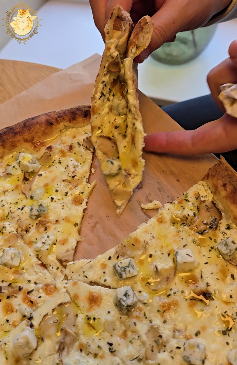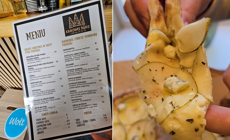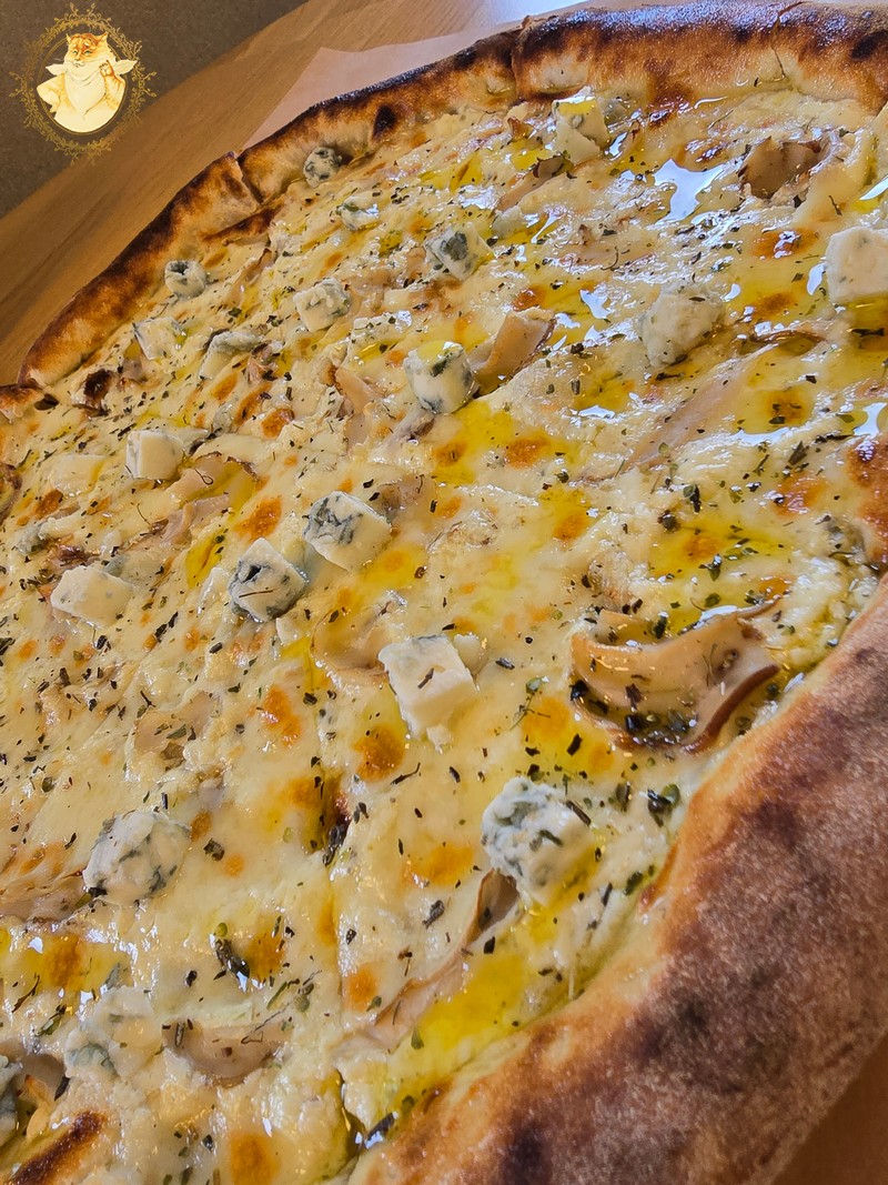 Nulėkęs prie prekystalio užsakiau dvi picas, viena iš dviejų buvo jau minėtas „Ožkos bučinys”, o kita desertui pica su kriaušėmis ir pelėsiniu sūriu.