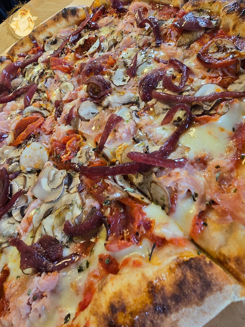 Jei pastebėjote ant „Jurgio” picos, taip pat kaip ir ant „Mortadelos” picos puikiai matosi gausiai užlieta aliejaus, kuriuo picas prieš mums patiekiant valgyti pagardino picerijos darbuotojas.