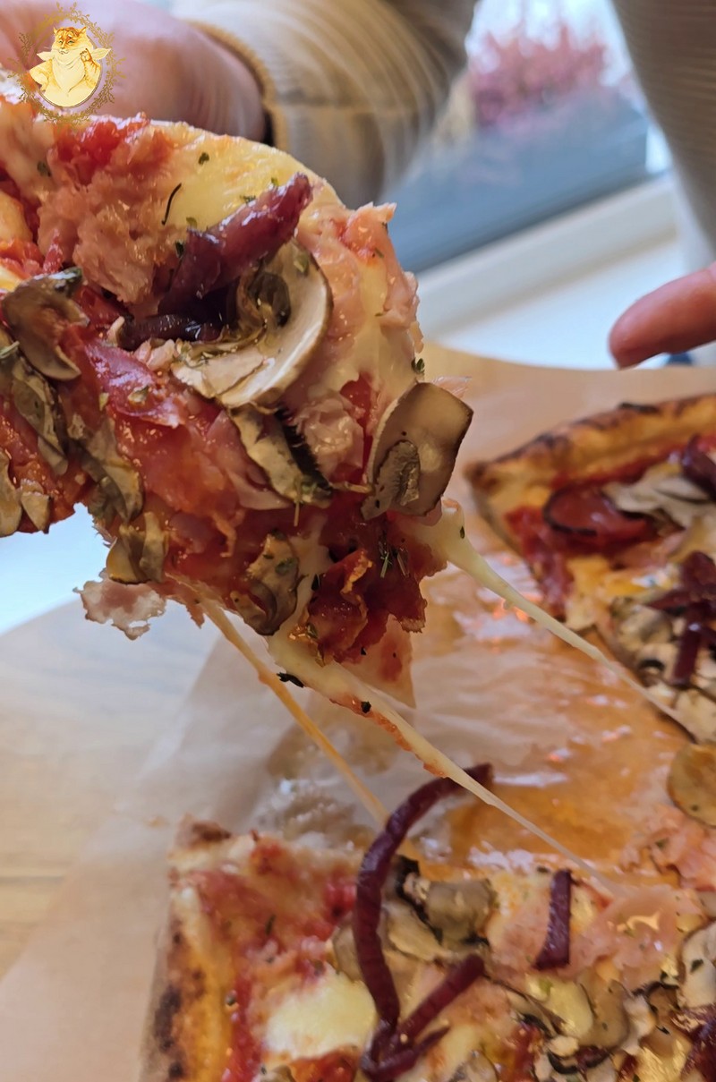Ir ką jūs manote, prabėgus kelioms minutėms po to kai Katinienė grįžo prie stalo, atnešė mums mano užsakytas picas.