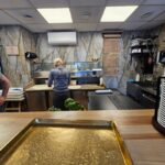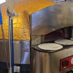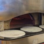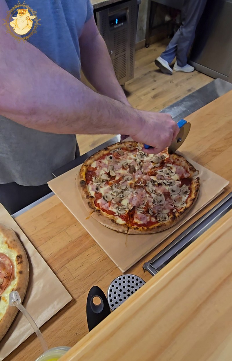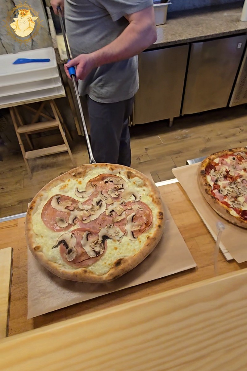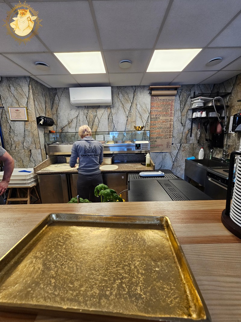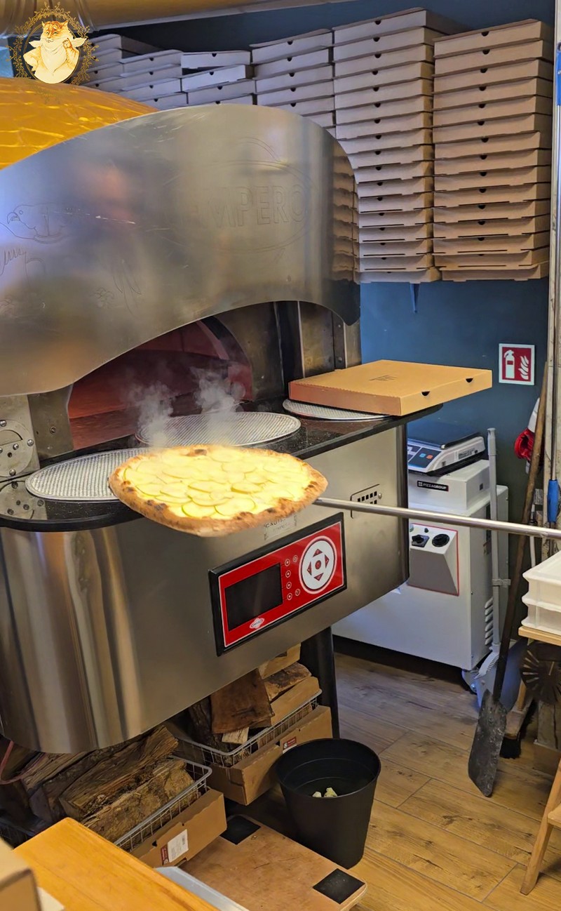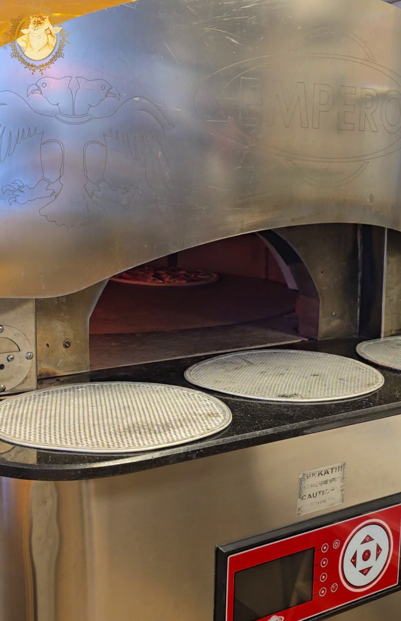 Malkinė krosnis picerijoje tokia didelė, kad dėl mažos picerijos patalpos nepajėgiau paveiksluodamas ją visą sutalpinti į kadrą.