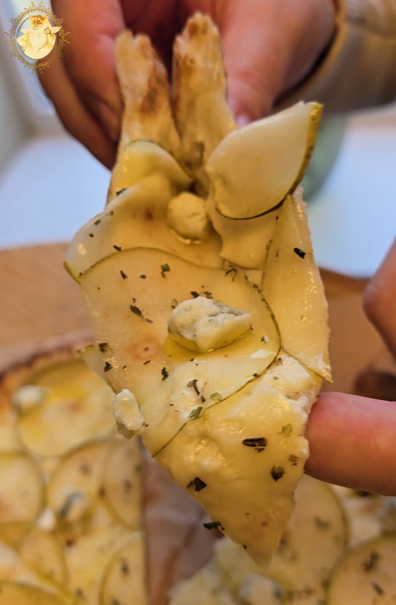 O kriaušių pica manau turėtų patikti smaližiams, nors kriaušės iš savęs ir nebuvo saldžios, bet saldesnio poskonio picai suteikė medus, kurį lengvai slopino švelnus pelėsinis sūris.