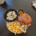 Mango – jelapenų padažas tiko ne tik prie burgerio, bet taip pat derėjo ir prie vilkešerio. Nors iš išvaizdos vilkešeris nuotraukose atrodo sausokai, bet Katinienė mane įtikino priešingai duodama paragauti kelis kąsnius.