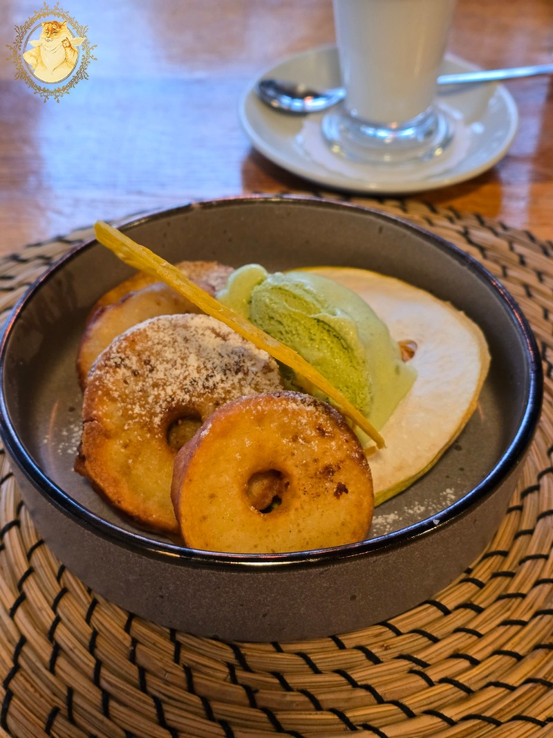 Nors ir vykome minėti gimtadienį, bet užsakėme tik vieną desertą – keptus obuoliukus, nes visi jau buvome sotūs ir laimingi, o ir namie laukė didžiulis tortas ir šventinis pasisėdėjimas didesnėje kompanijoje…