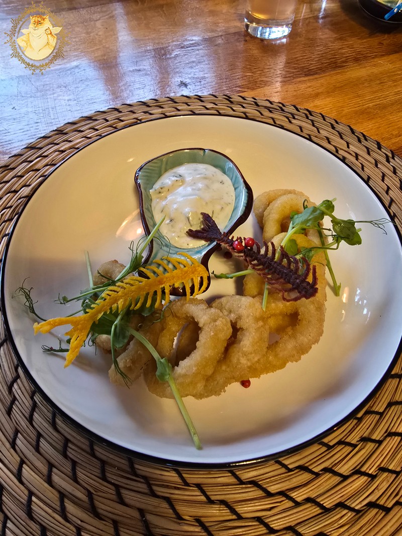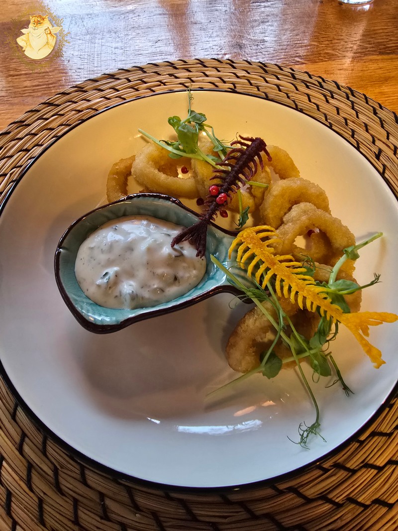 Kalmarų žiedai ant mūsų stalo atsirado tik dėl to, kad užsakant mūsų stalelį aptarnavusi mergina patvirtino, kad kalmarų žiedus paniruoja vietoje, ir tai tikrai bus ne gruzdintuvėje pašildyti šaldyti pusfabrikačiai.