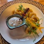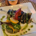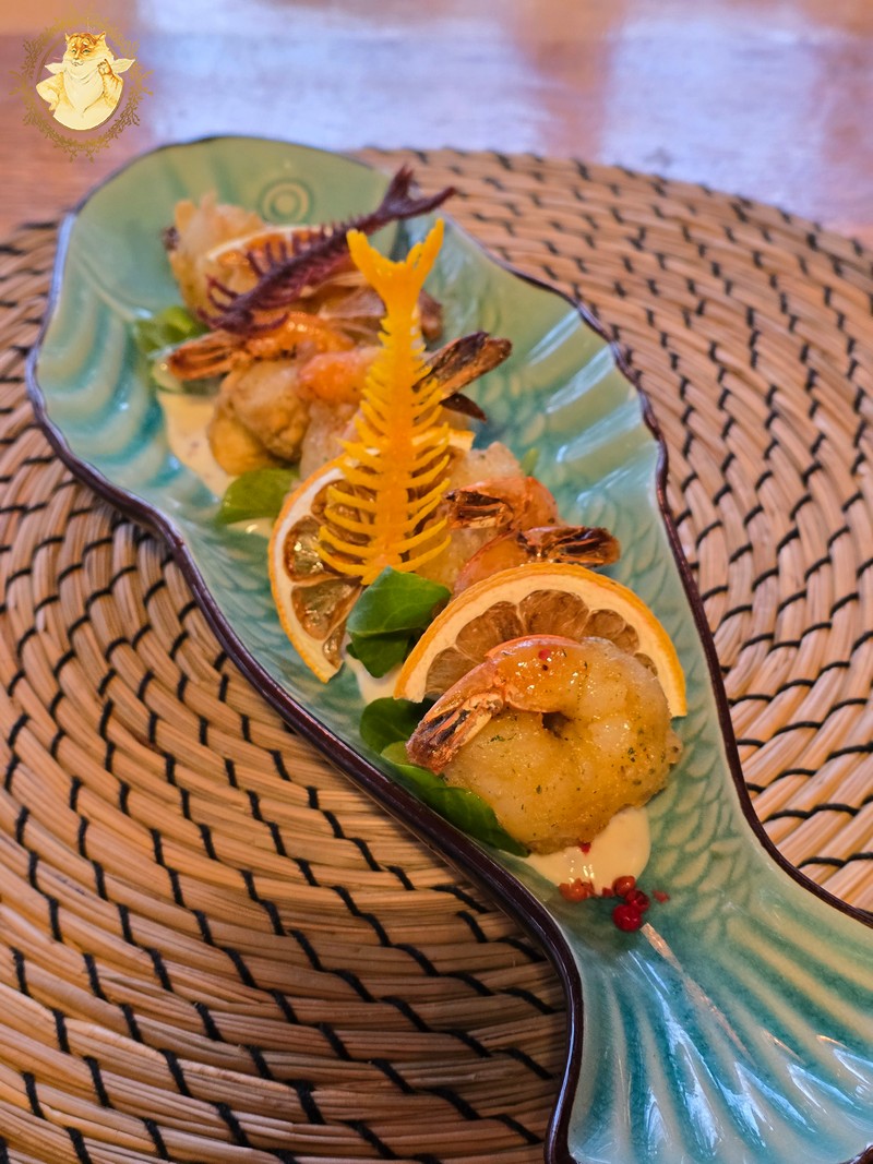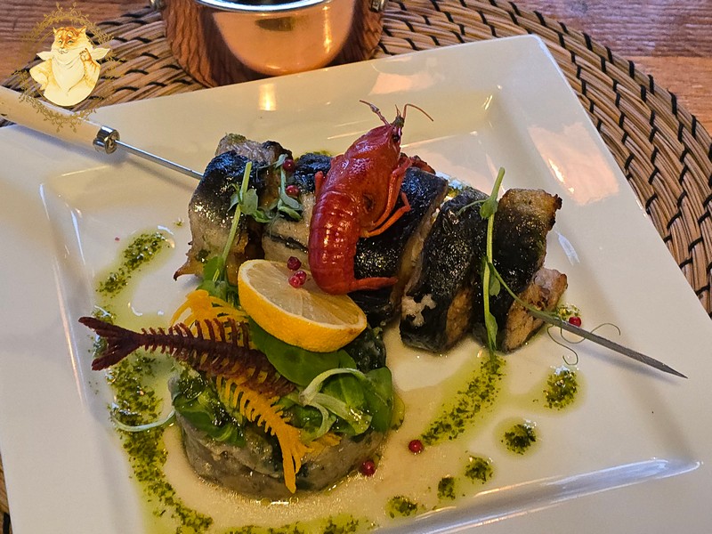 Dar toks pastebėjimas, vienu metu net susimąsčiau, kad mane atpažino. Ir supratę kad prie stalo sėdi riebių katinų komanda virtuvė lyg tyčia beveik visus mūsų patiekalus gardino dekoratyviniais žuvų kaulais.