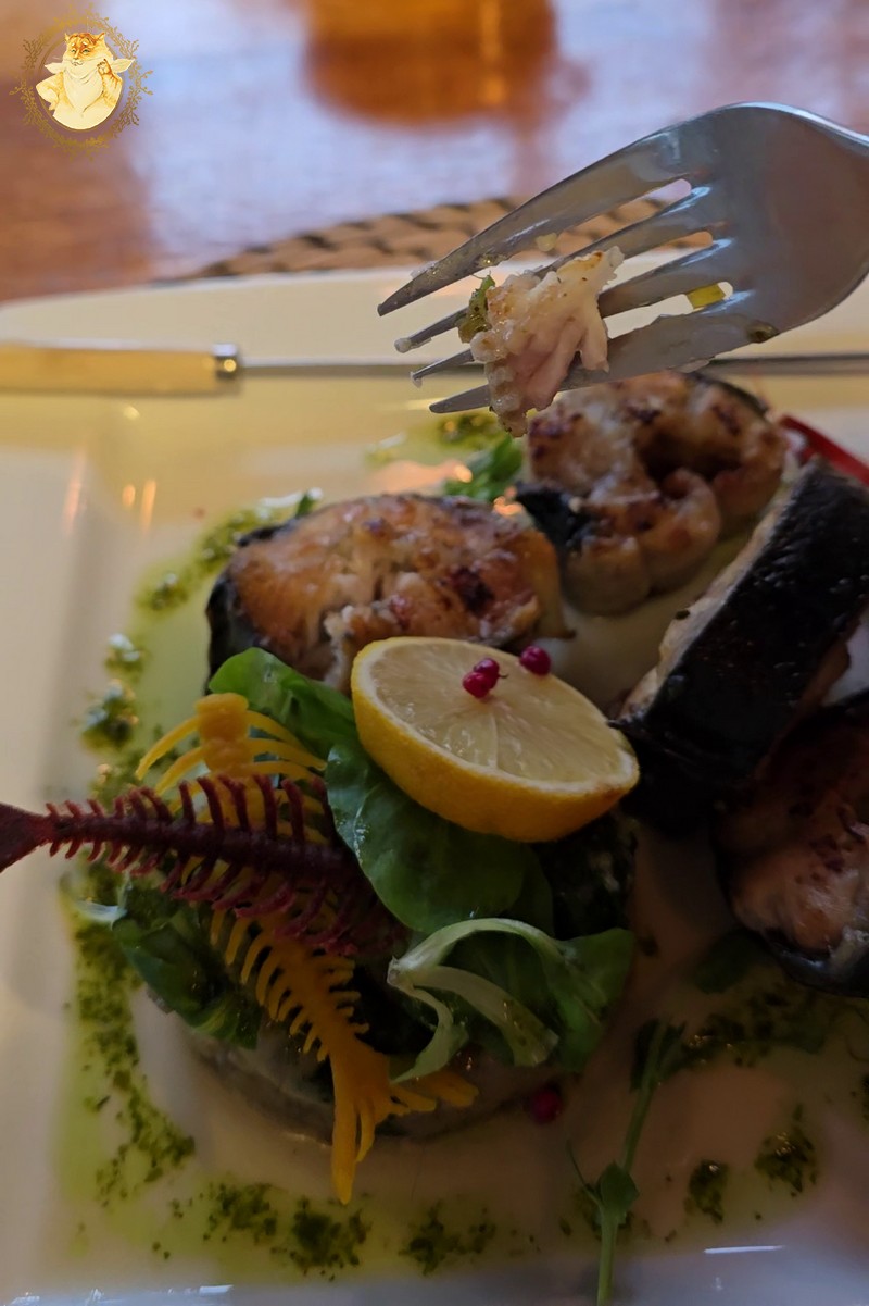 Užsakant buvo kažkiek abejonių, bet jos išgaravo vos paskanavome šio patiekalo. Tai kiek riebesnė žuvis nei lašiša, bet labai sultinga.