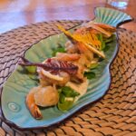 Na ir mes pasitarę kompanijoje nusprendėme didžiąją dalį užsakymo skirti jūros gėrybių ir žuvies patiekalams. Tarp pagrindinių patiekalų puikavosi ungurys ir net erškėtas, tad gimtadienio proga tokie patiekalai pats tas.
