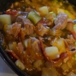 Minusas šio patiekalo tik tas, kad jaučio žandai baisiai nefotogeniški. Kokiu nori kampu sukinėk lėkštę, bet vaizdelis nuo to nuotraukoje nepasidarys geresnis.
