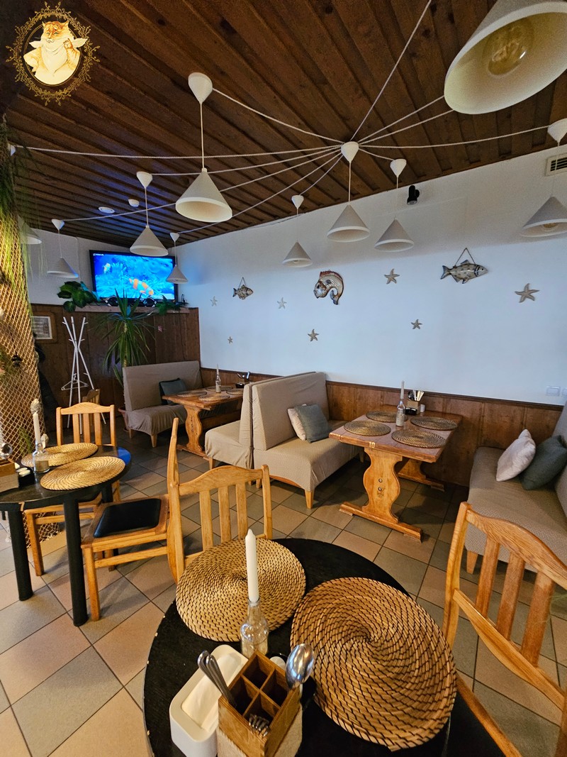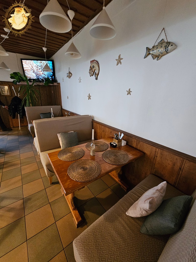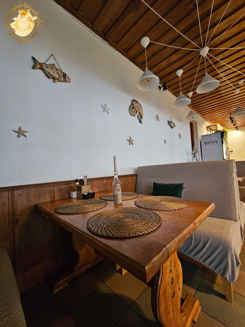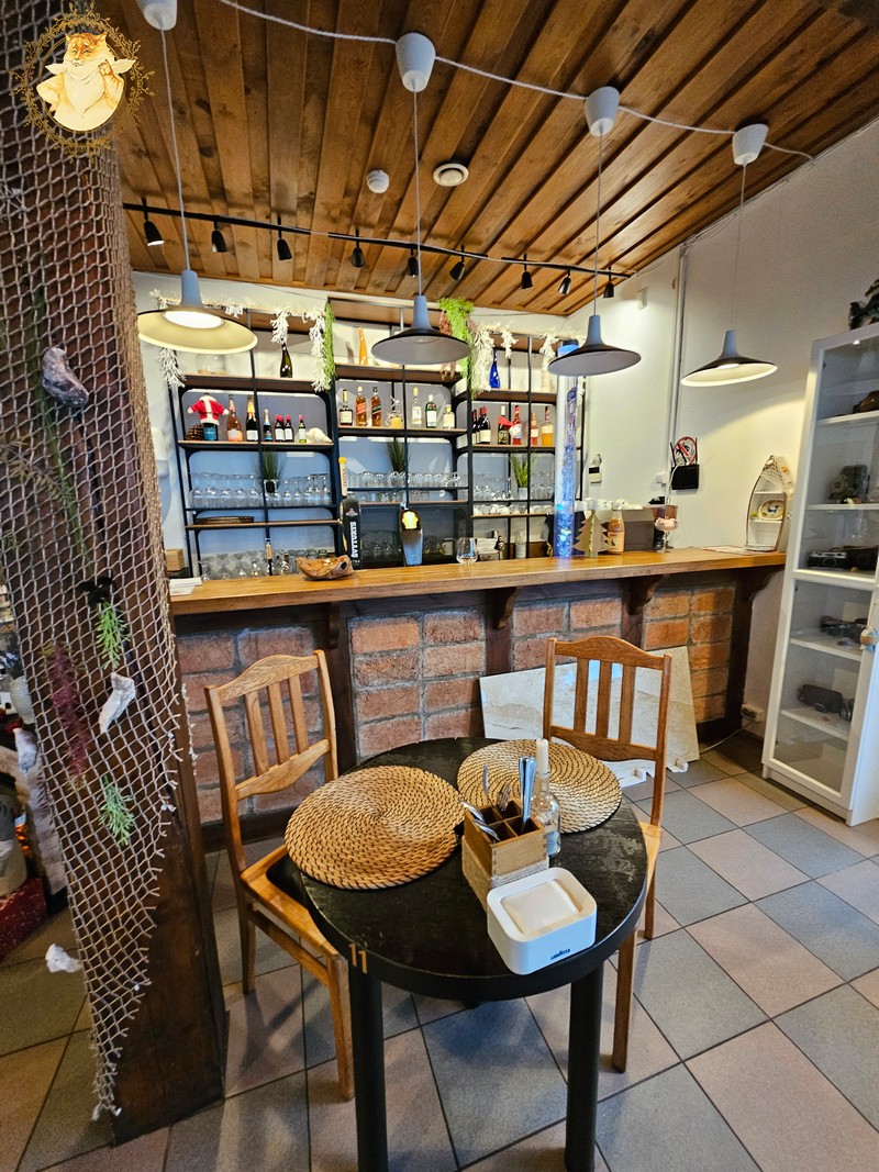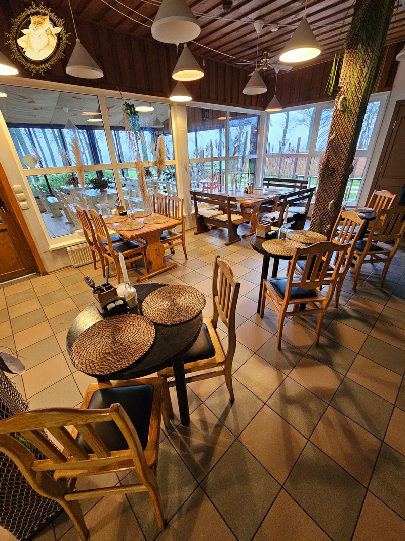 „Ventės žuvelėje” į kurią atvykome, be mūsų buvo dar barmenė ir kažkiek virtuvėje darbuotojų, tai Katinienė leido sau padaryti daugiau interjero nuotraukų, neįtraukiant į jas pašalinių žmonių.