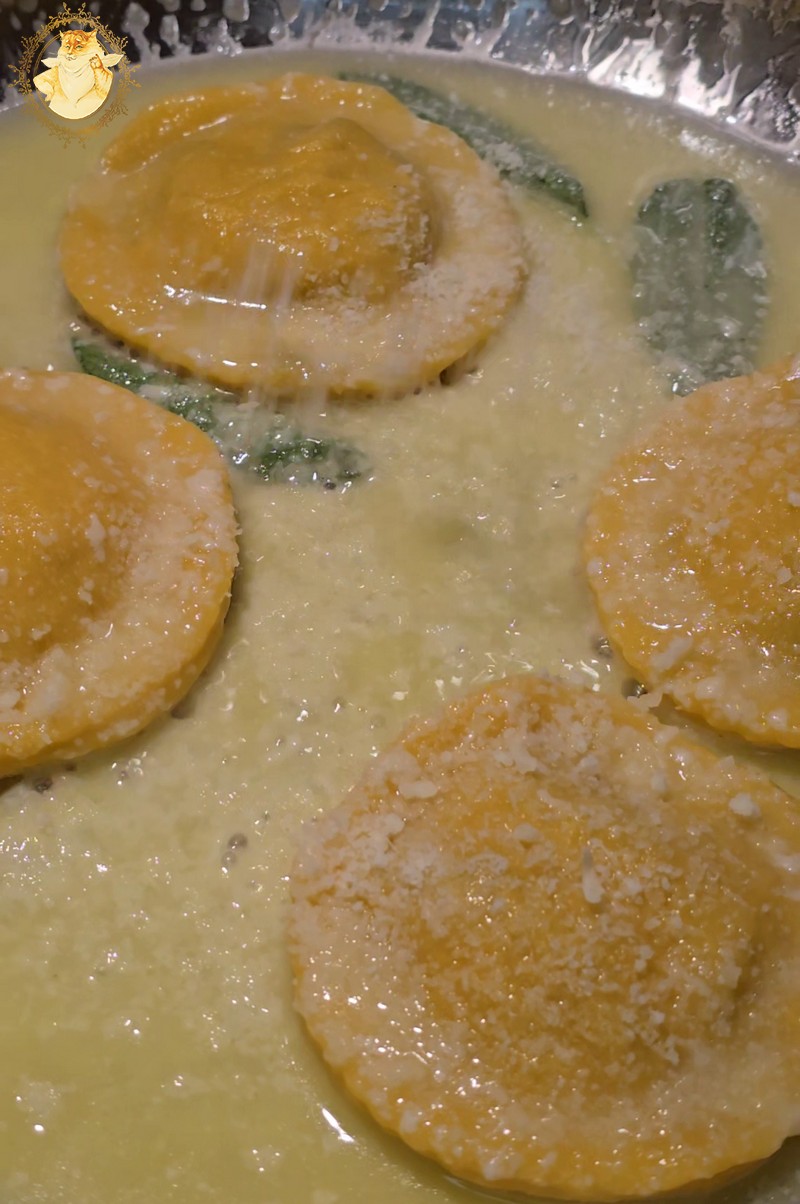 Į pasūdytą vandenį sudedame raviolius ir jiems iškilus verdame 3-4 minutes, priklausomai nuo jų dydžio.