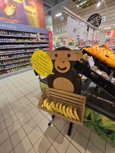 Mes apsilankę neradome nei pigių bananų, nei kokybiškų prekių. Radome apleistą skyrių, kurį manau reiktų uždaryti ir kol jame nebus perrinktos daržovės, ir nebus iššluotos grindys tarp stelažų prekyba vaisiais ir daržovėmis turėtų būti uždrausta.