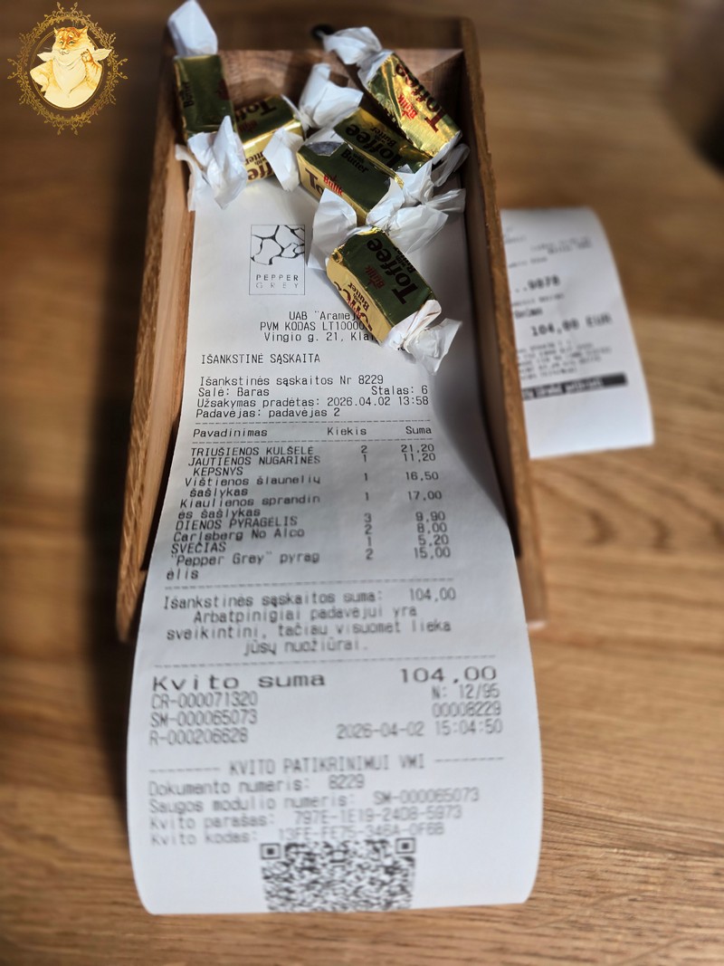 Reziumuoju. Eidamas atsiskaityti, jau buvau nusprendęs, kad šį kartą vertinimo balas bus mažesnis nei įprastai būdavo čia apsilankius, bet viską ištaisė padavėja, kuri virtuvės vardu atsiprašė už man neįtikusį kiaulienos šašlyką, ir restorano vardu mūsų užsakytas kavas į sąskaitą neįtraukė, o jomis pavaišino.